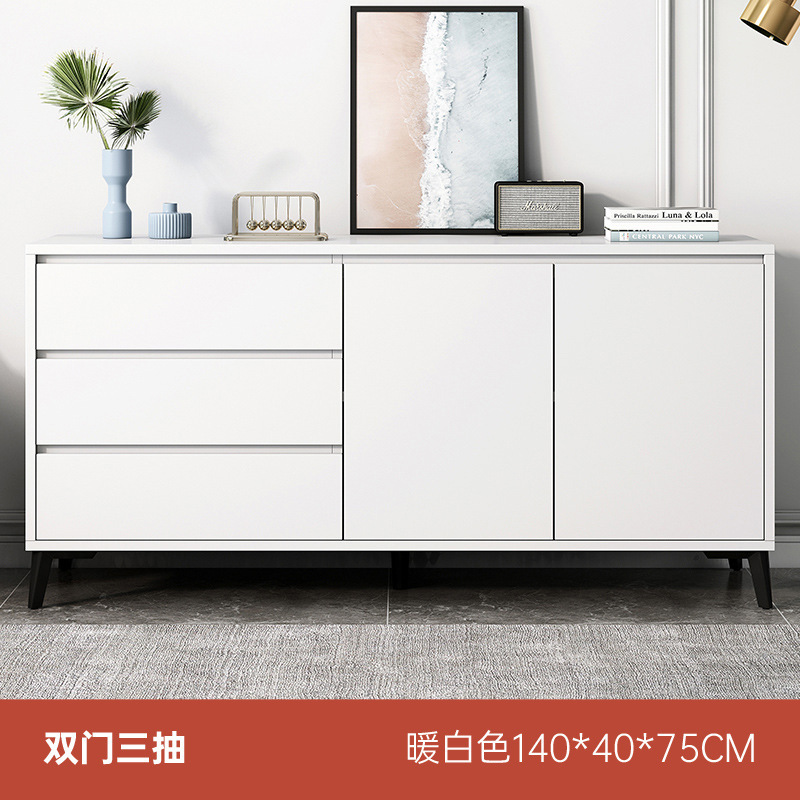 • [이중문 및 서랍 3개] 140*40*75CM 웜화이트(레일이 있는 서랍)