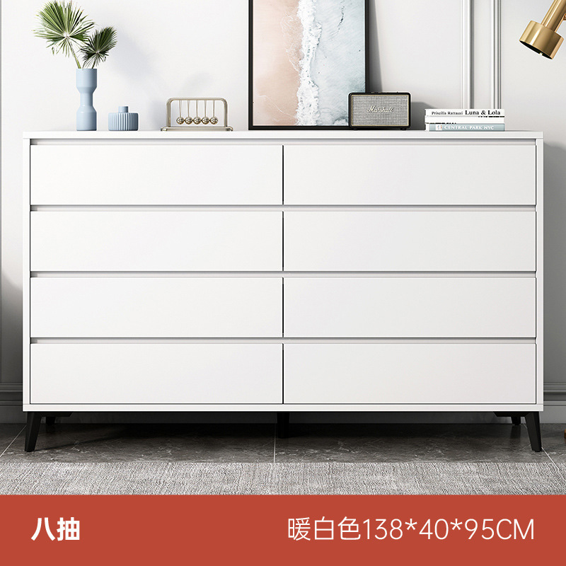 • [8단 서랍 복열 모델] 138*40*95CM 웜화이트 (가이드 레일이 있는 서랍)