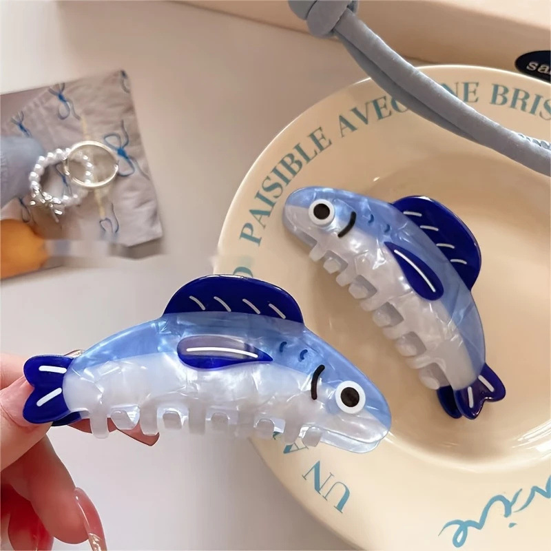 새로운 장난스러운 정어리 클립 만화 동물 상어 클립 재미있는 포니 테일 클립 패션 여성 헤어 액세서리 도매스토어 가기