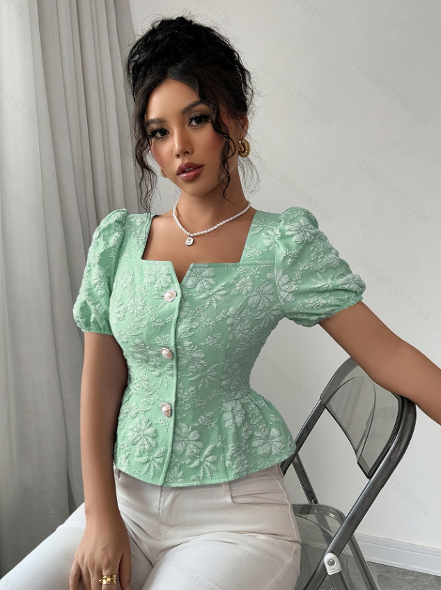 레이스 반팔 셔츠 여성의 새로운 중국 스타일 허리 짧은 탑 2025 새로운 핫 스타일 중국 스타일 쉬폰 셔츠 여름스토어 가기