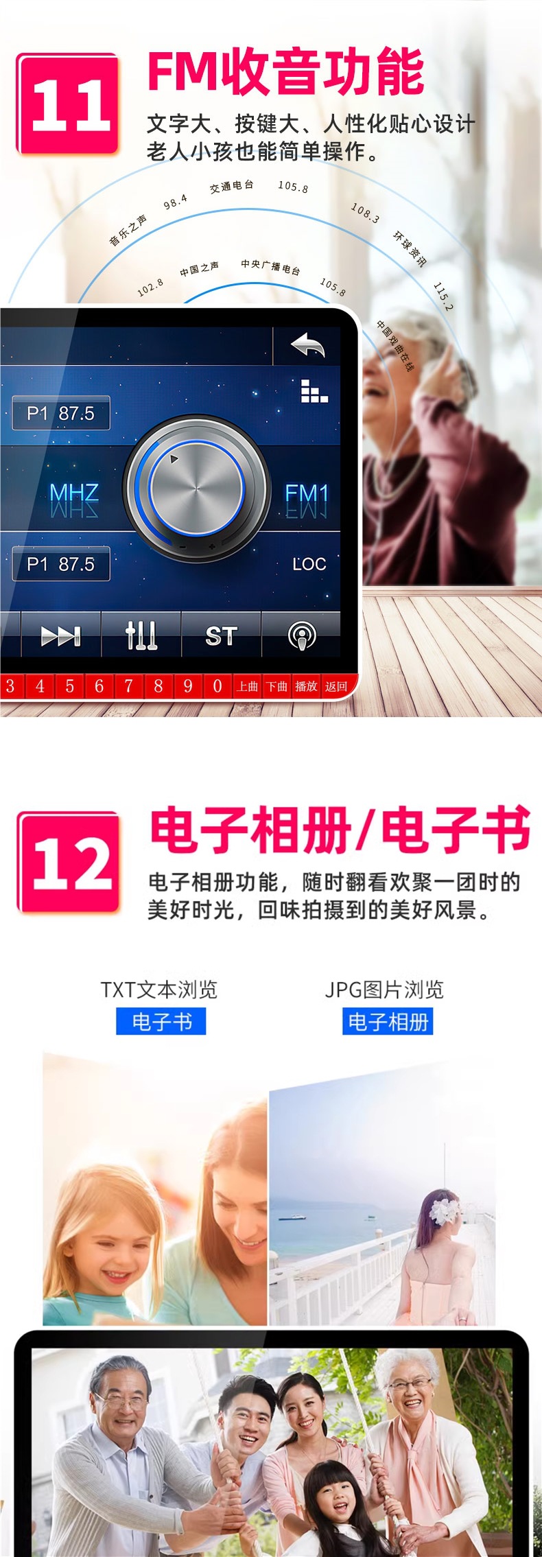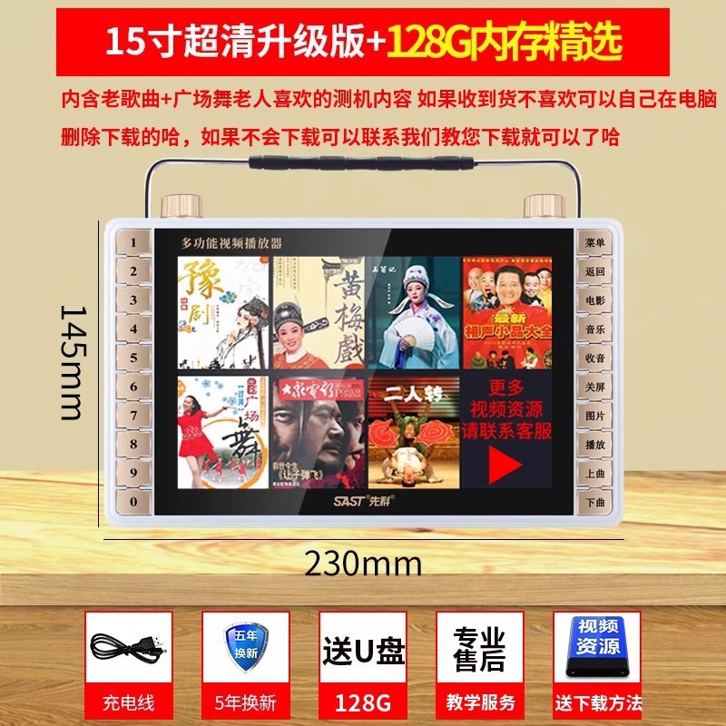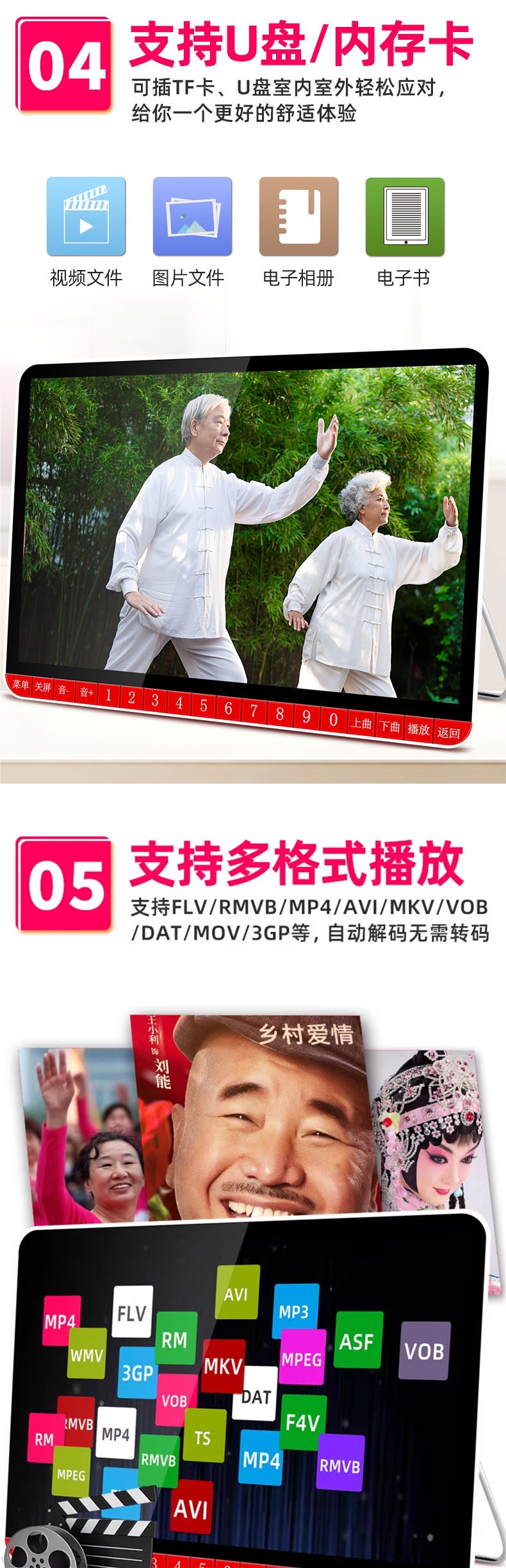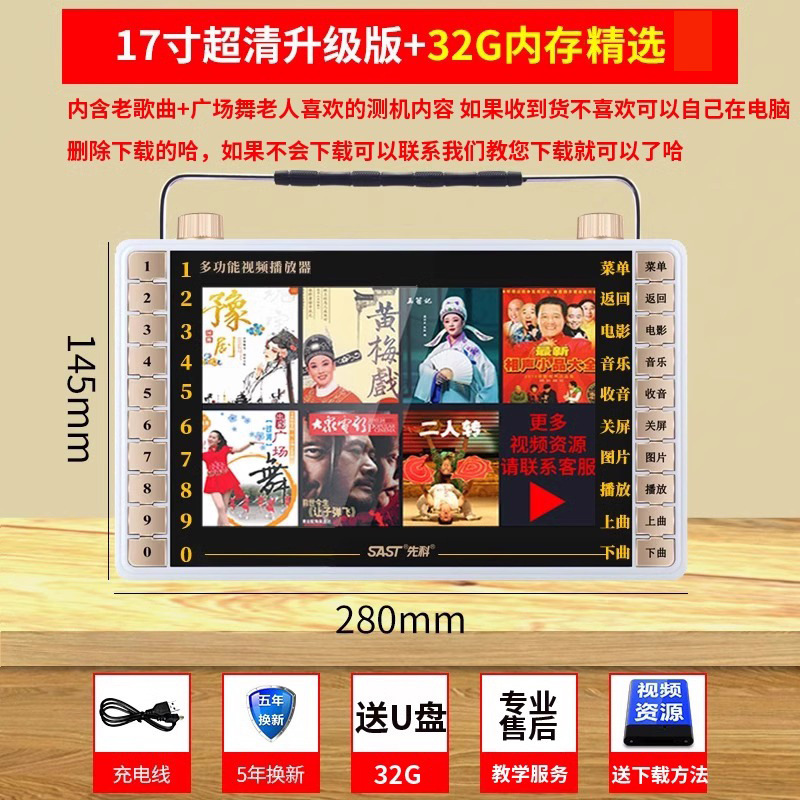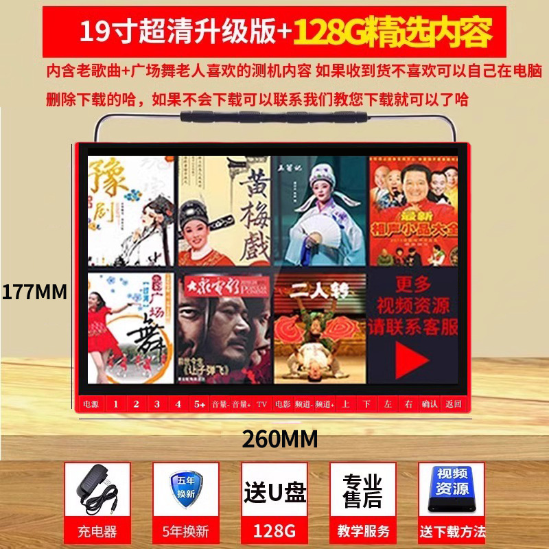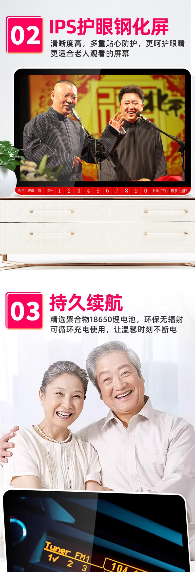 노인용 라디오, 휴대용 소형 TV, 네트워크 없음, 다기능 듣기, 노인을 위한 대형 스크린 고화질 노래 기계