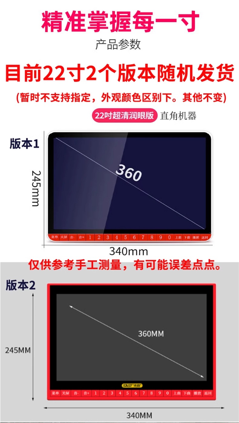 • 22inch 울트라 클리어 업그레이드 [Type-c 충전 포트] + 보증 + 무료 리모컨 + 자신의 카드/U 디스크가 필요합니다.