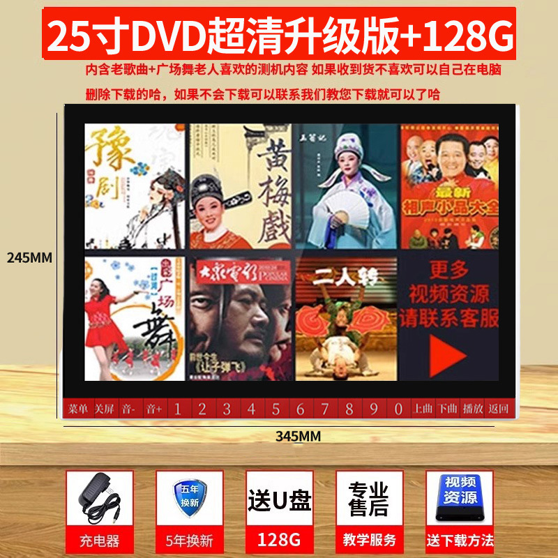 • 25inch 울트라 클리어 DVD 재생 버전 + 무료 리모콘 [256GU 디스크(2488 파일 내장)]