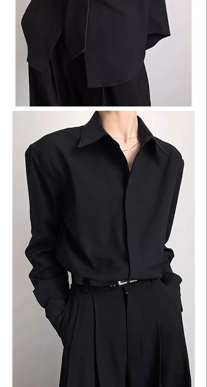 가벼운 성숙한 스타일 남성 흰색 셔츠 가을 새로운 검은 색 셔츠 한국 스타일 유행 긴팔 비즈니스 캐주얼 탑