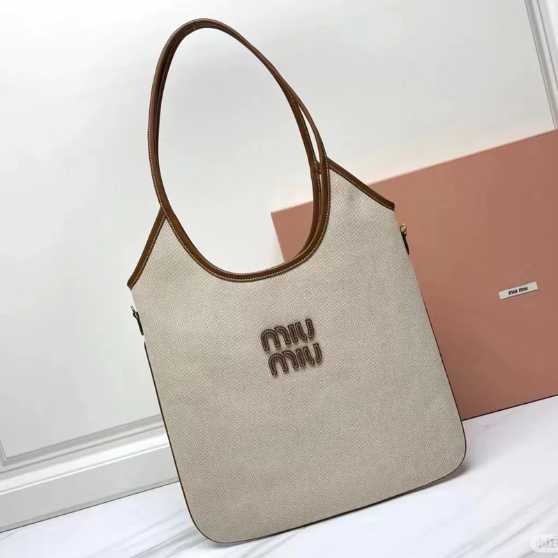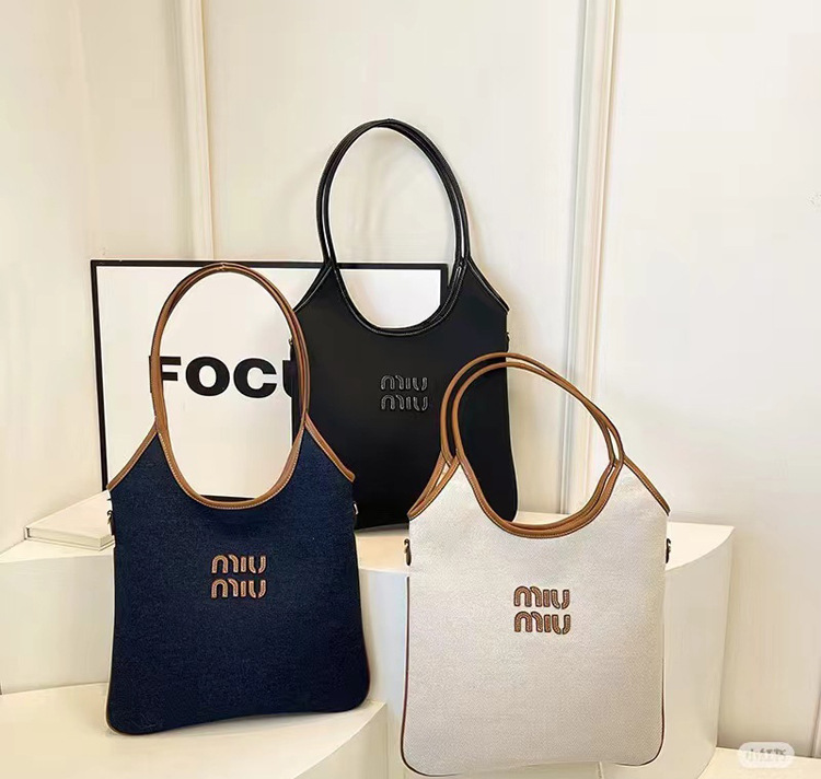 Miu Miao 새로운 토트 백 대용량 쇼핑백 복고풍 패션 캔버스 싱글 숄더 휴대용 겨드랑이 여성용 가방