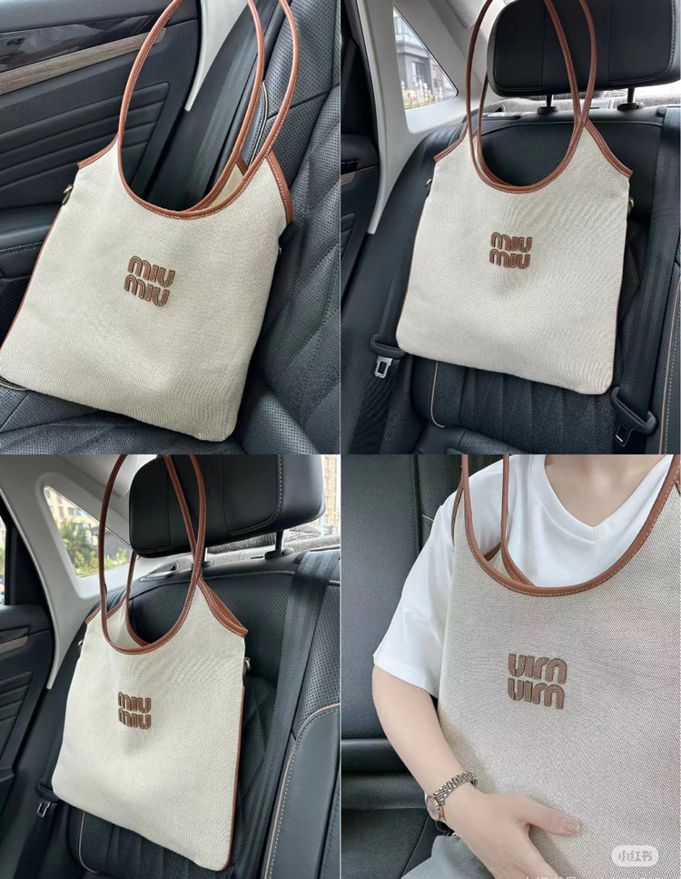 Miu Miao 새로운 토트 백 대용량 쇼핑백 복고풍 패션 캔버스 싱글 숄더 휴대용 겨드랑이 여성용 가방스토어 가기
