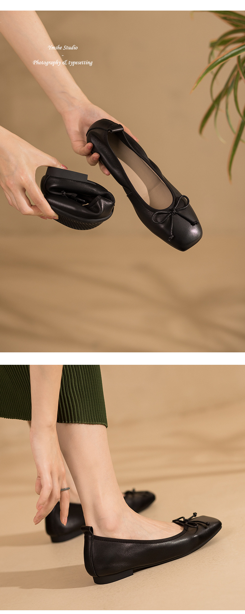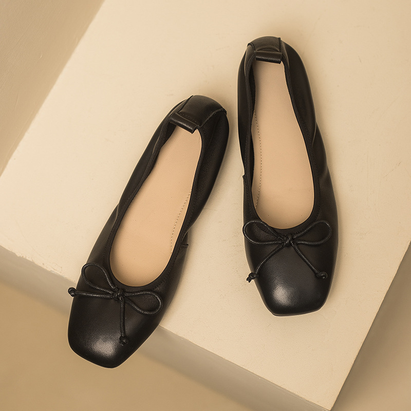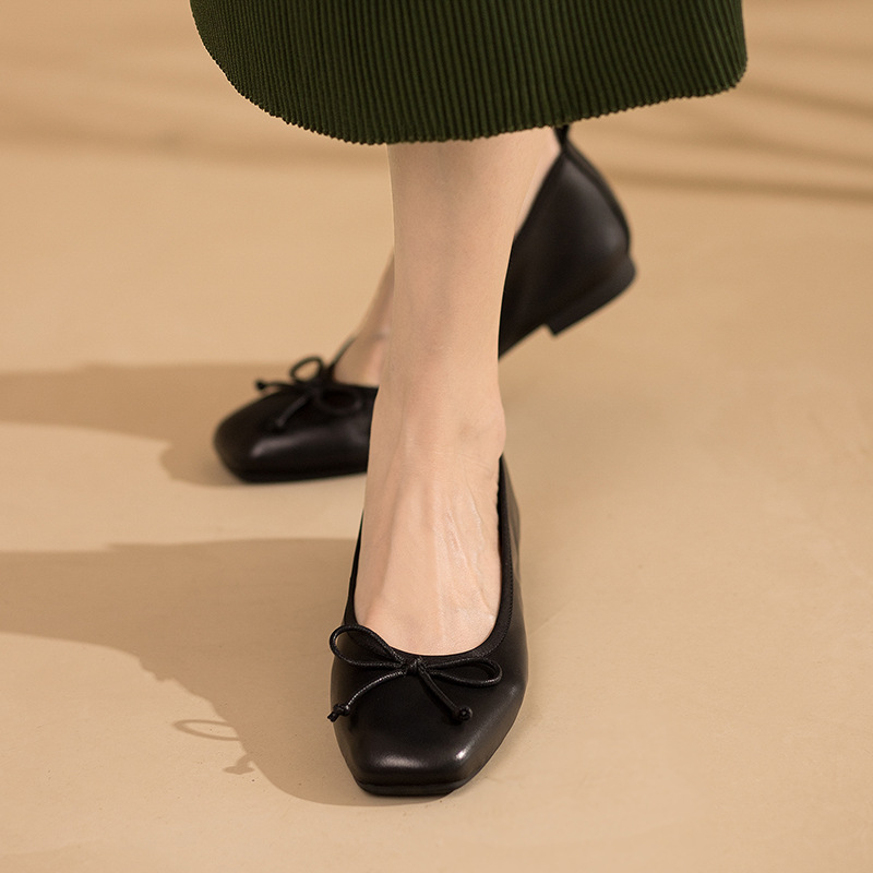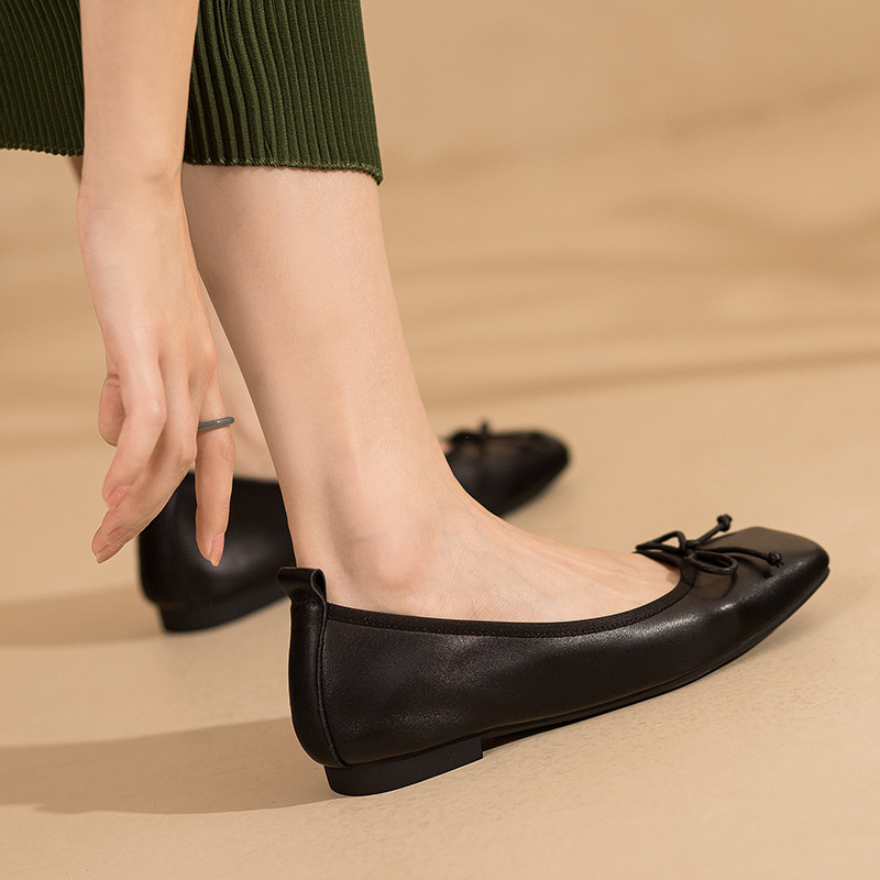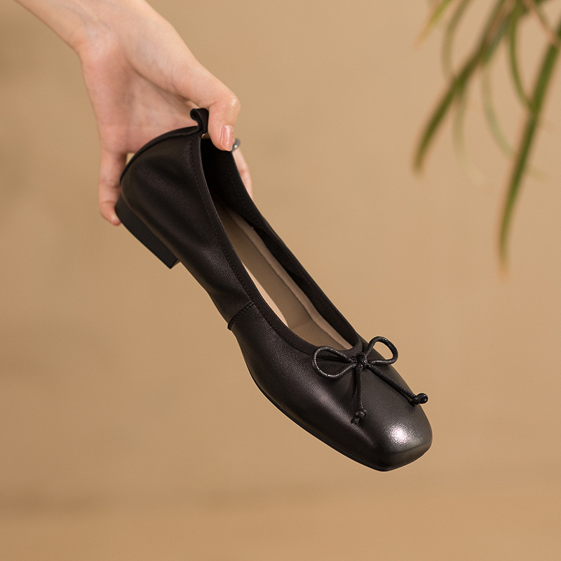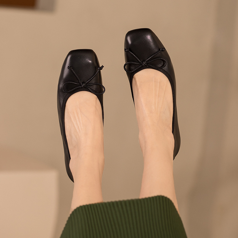 Jusoft 전체 가죽 계란말이 신발 2025 가을 신작 플랫 스타일 스퀘어 토 보우 할머니 신발 플랫 스타일 펌프스 여성 신발스토어 가기