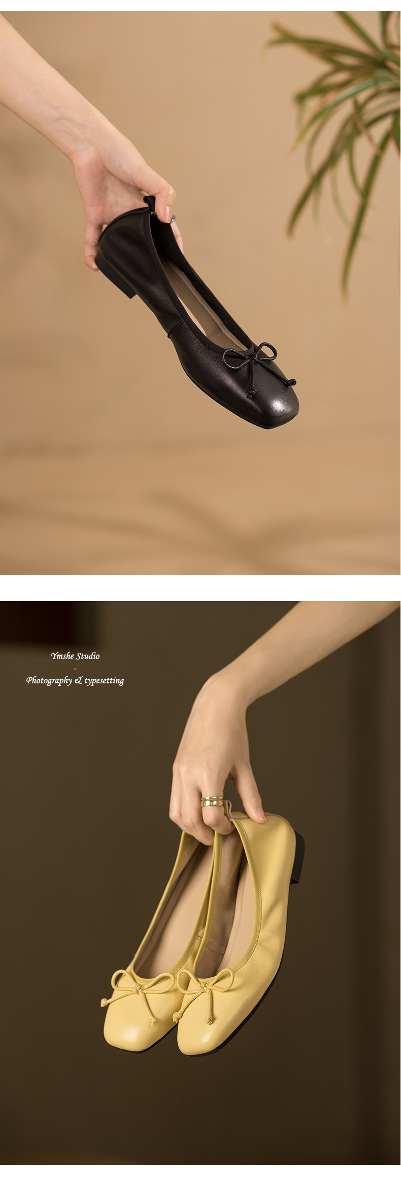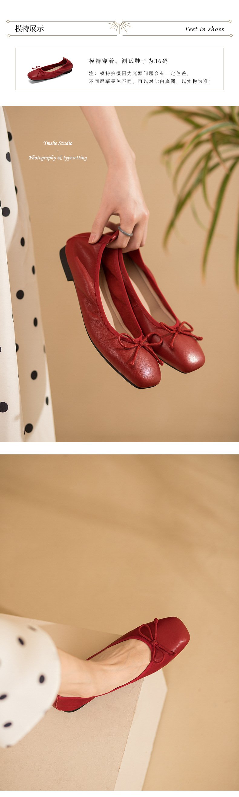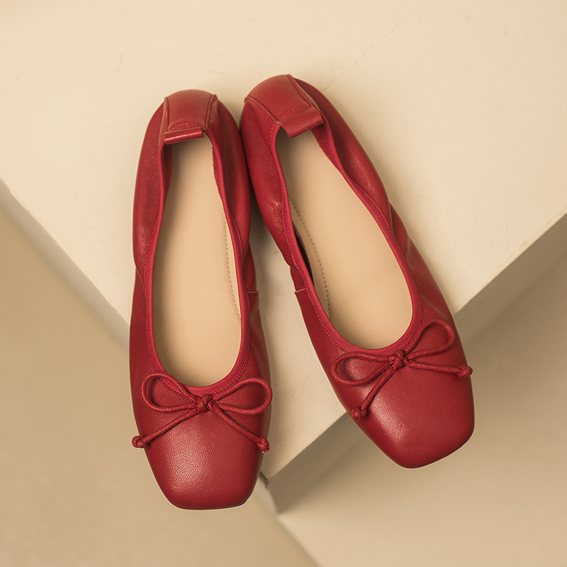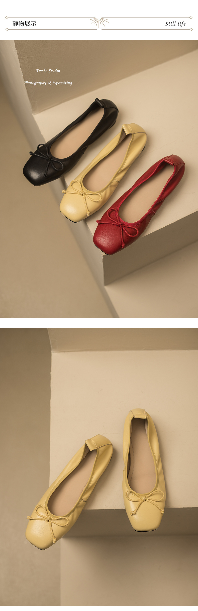 Jusoft 전체 가죽 계란말이 신발 2025 가을 신작 플랫 스타일 스퀘어 토 보우 할머니 신발 플랫 스타일 펌프스 여성 신발스토어 가기