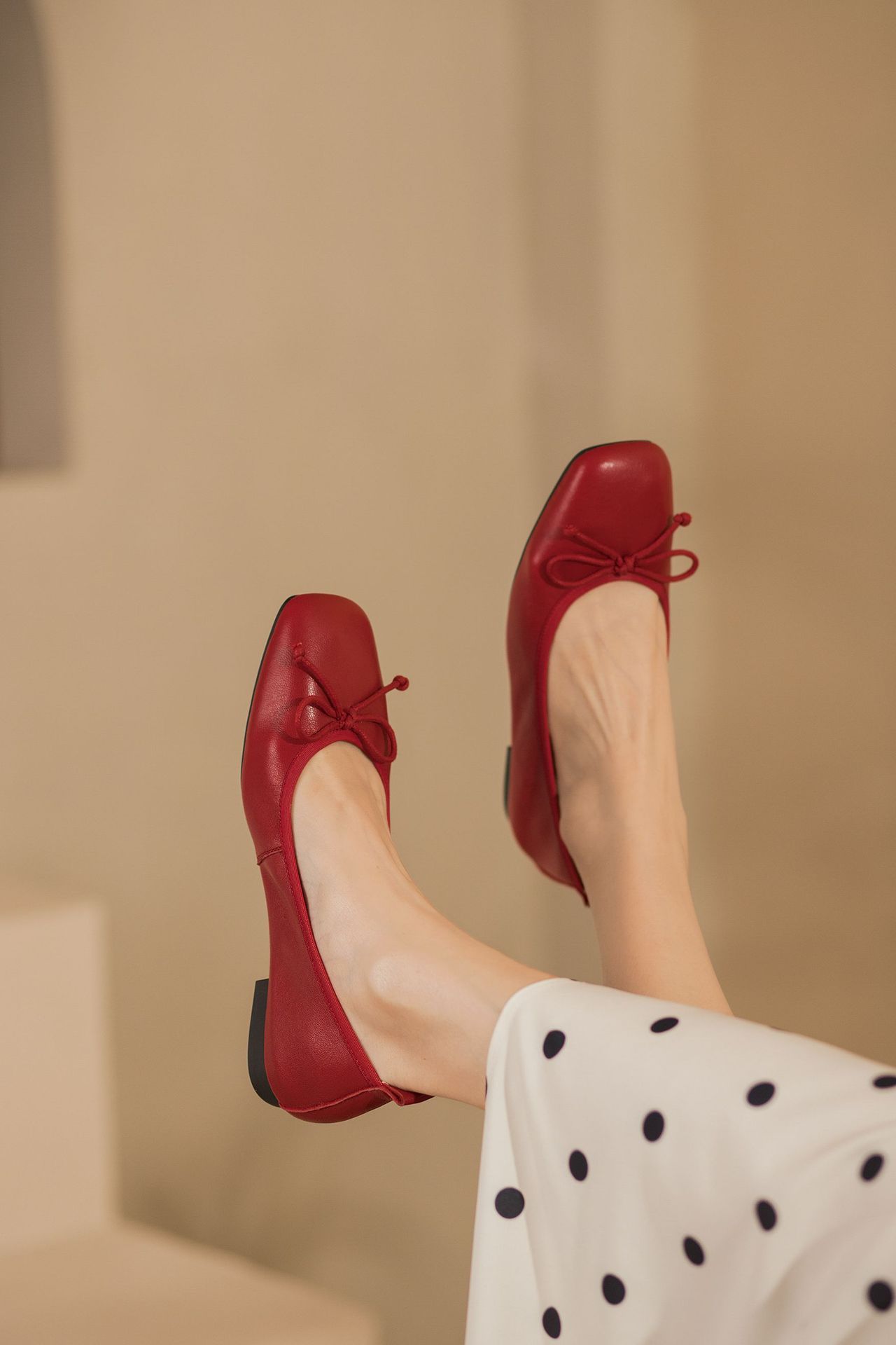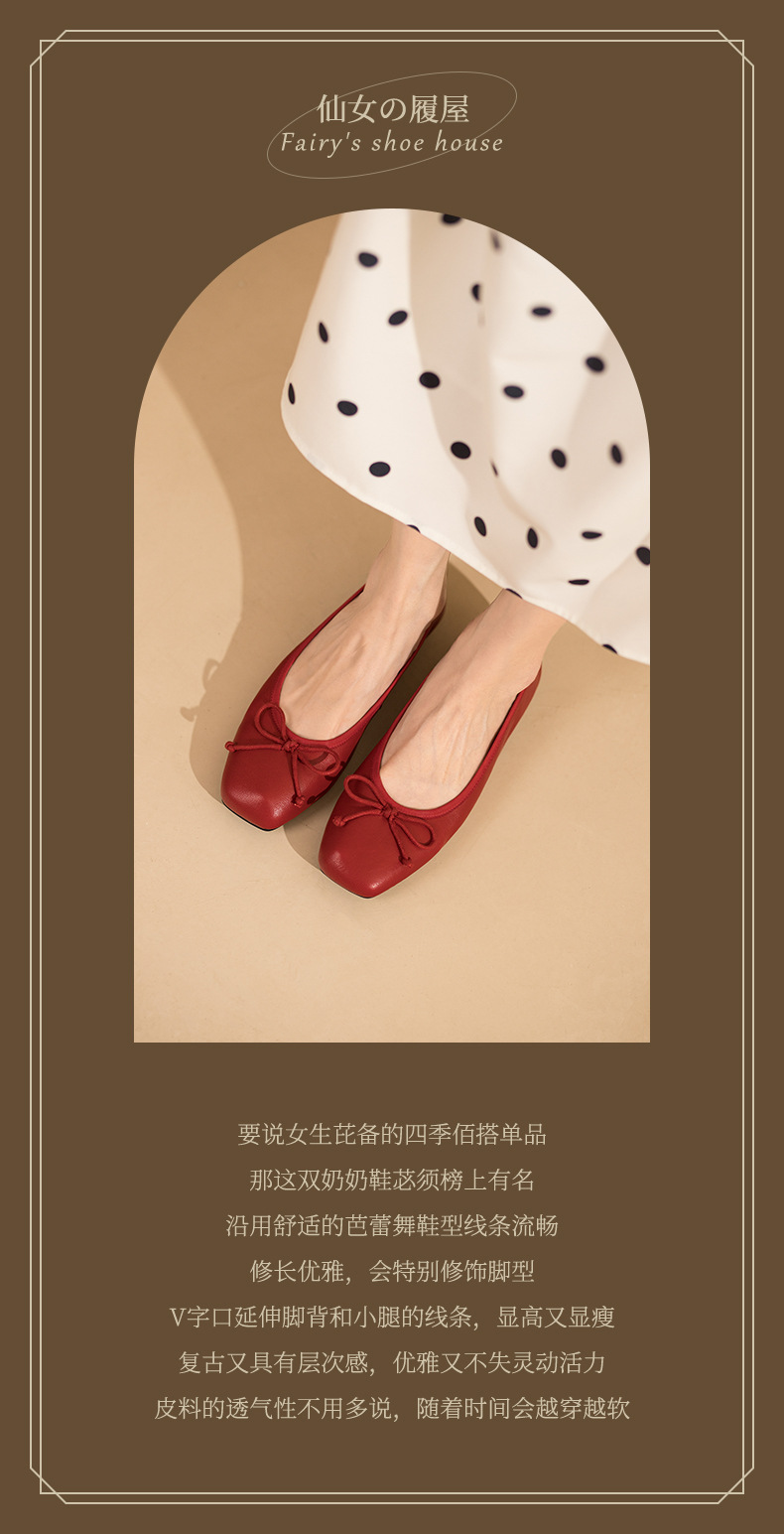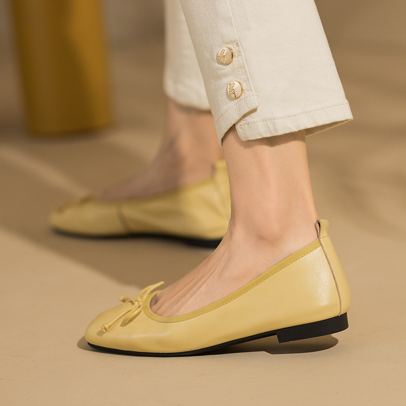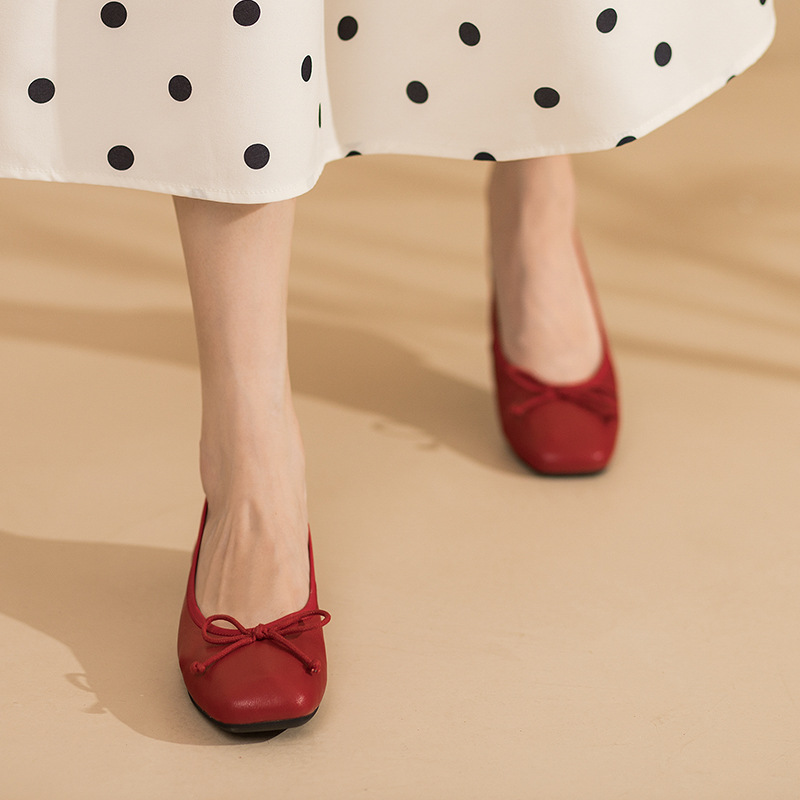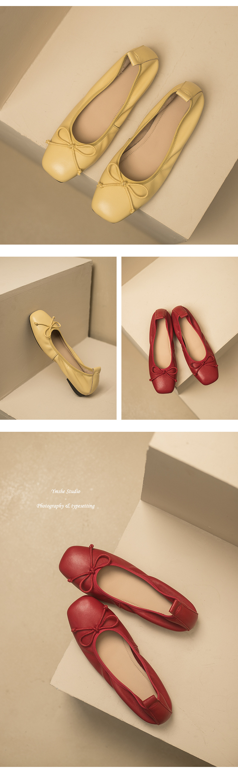 Jusoft 전체 가죽 계란말이 신발 2025 가을 신작 플랫 스타일 스퀘어 토 보우 할머니 신발 플랫 스타일 펌프스 여성 신발스토어 가기