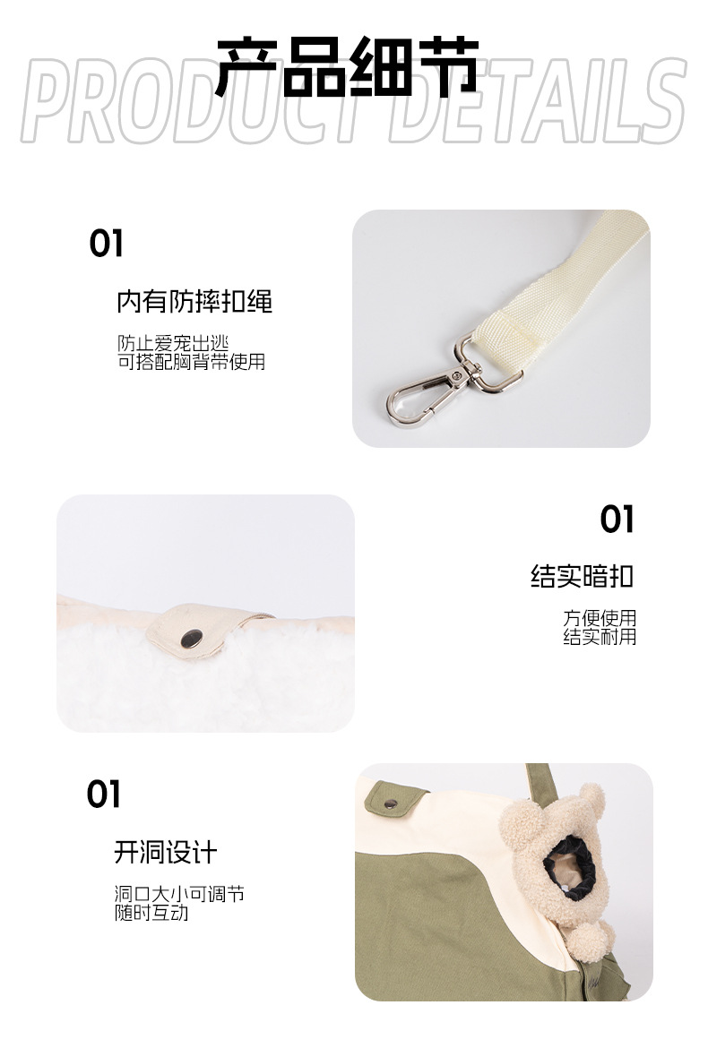 • 곰 캔버스 고양이 가방 그린