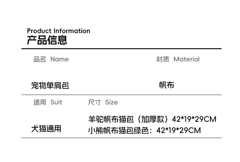 • 알파카 캔버스 고양이 가방 (두꺼운 버전)