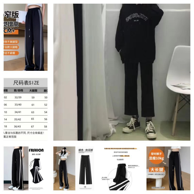 여성을위한 얼음 실크 캐주얼 바지 여름 얇은 2025 새로운 스트레이트 루즈 스포츠 블랙 봄, 여름 하이 웨이스트 와이드 레그 팬츠스토어 가기