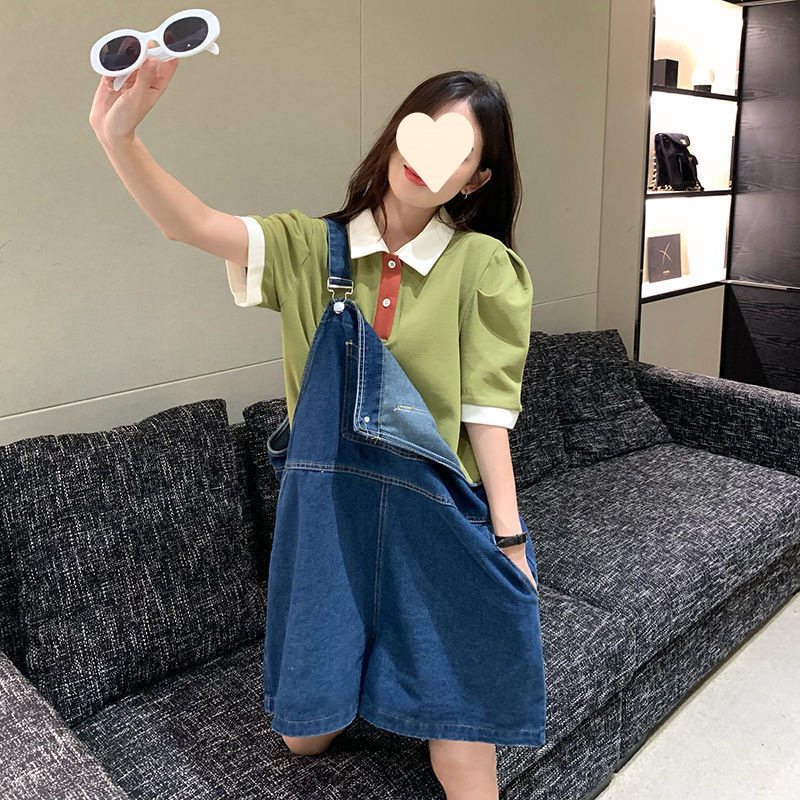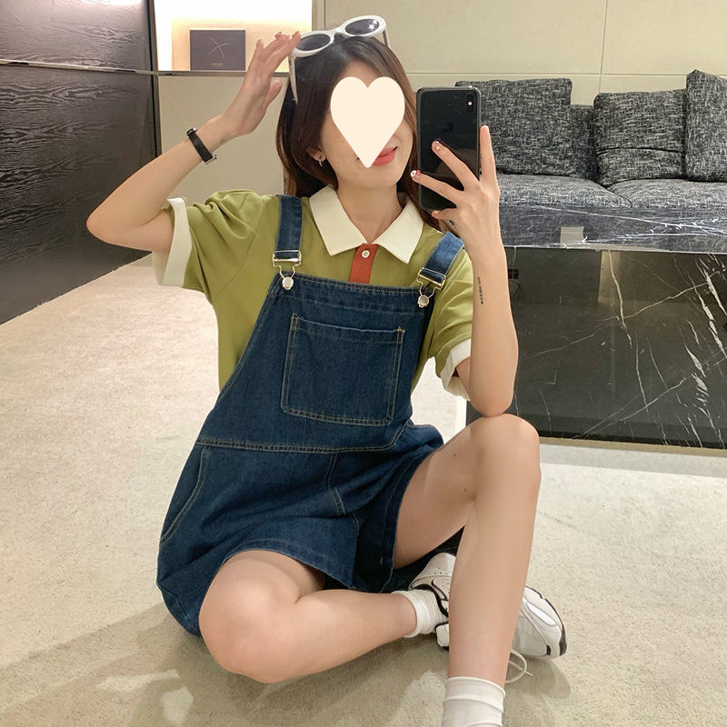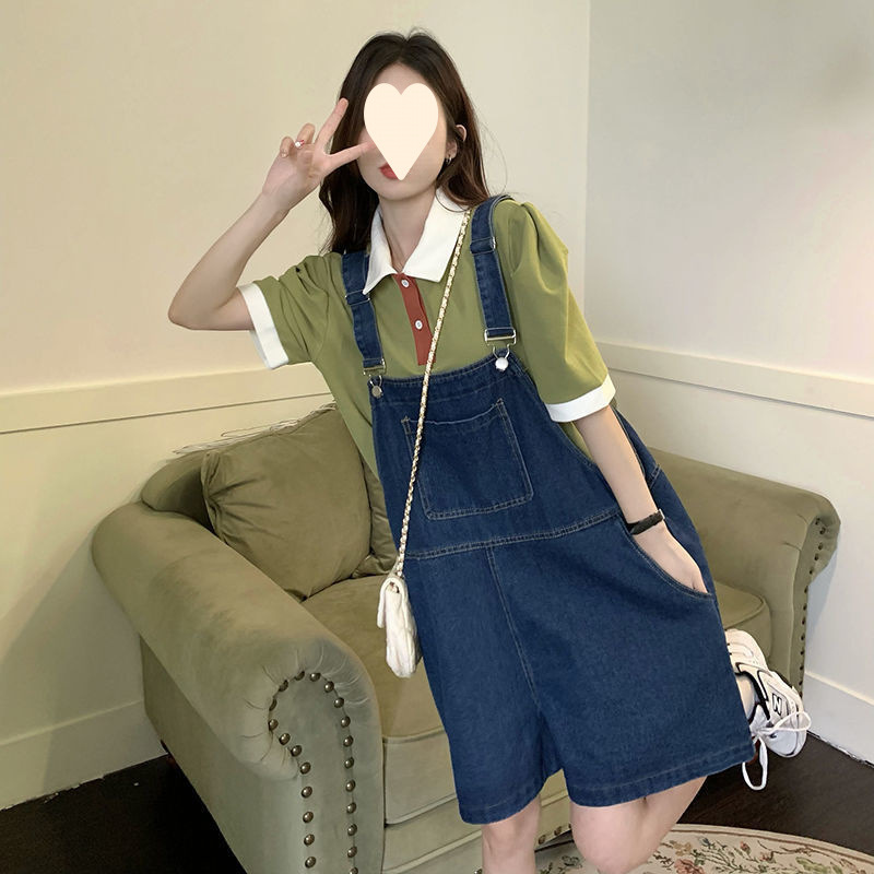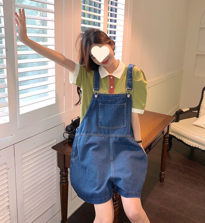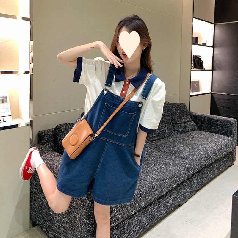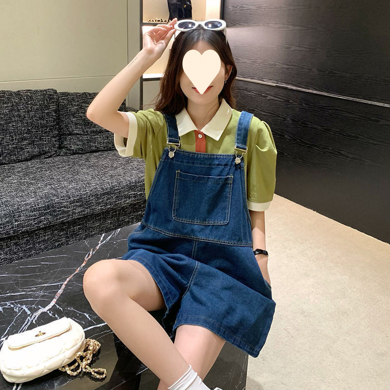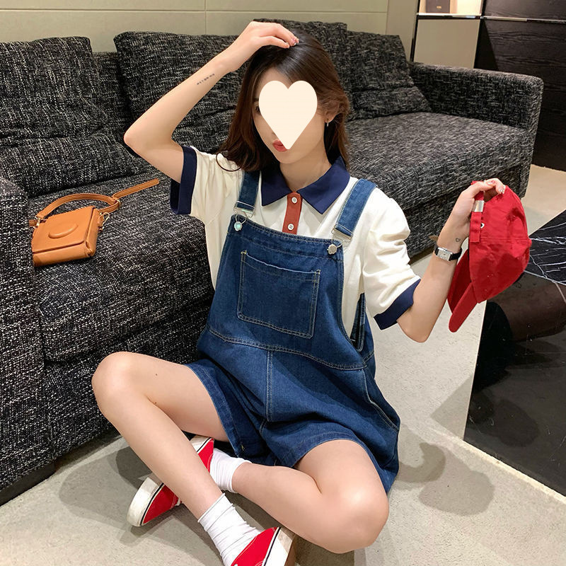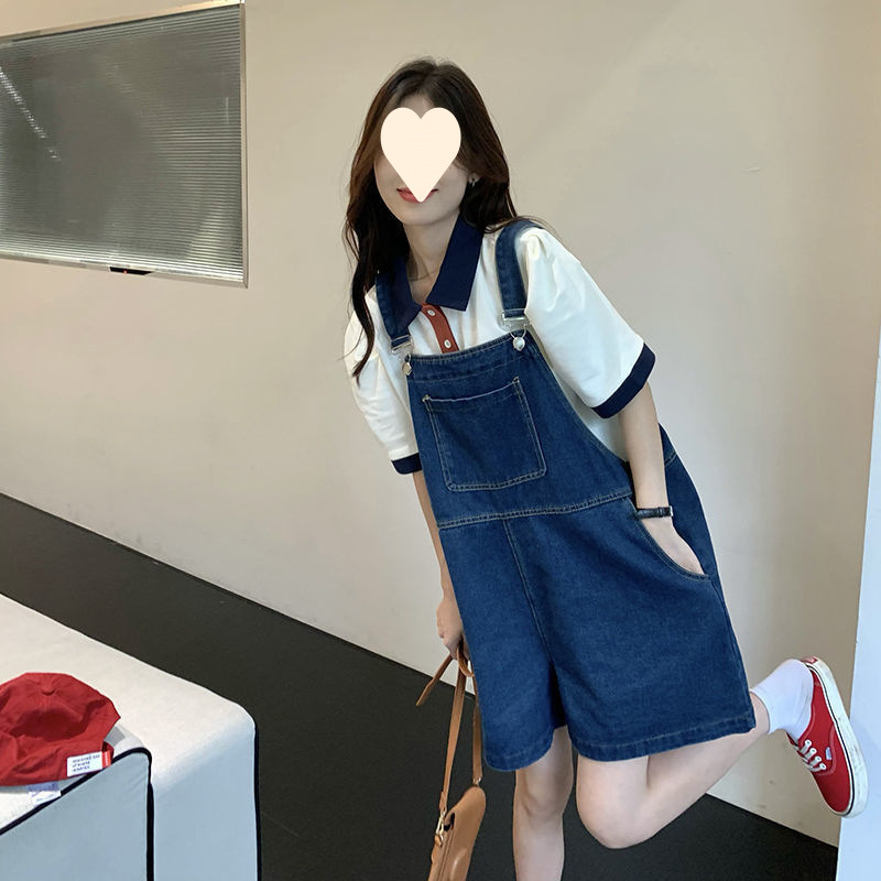 와이드 레그 데님 오버올 컬리지 스타일 여성 바지 여름 2025 새로운 루즈 디자인 5부 반바지스토어 가기