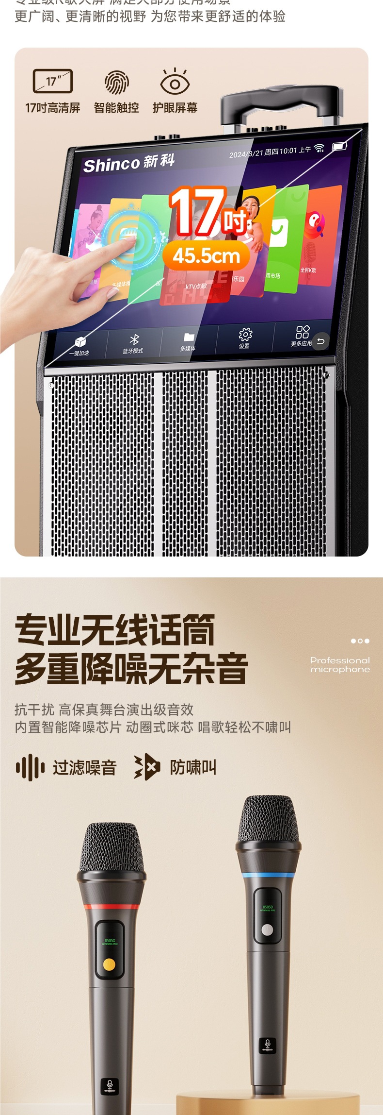• Xiaobao는 동일한 화면을 갖춘 두꺼운 50inch 사운드 카드를 갖추고 있습니다. [초고화질 0 지연 + 21인치 3 스피커] 표준 구성 [단어 표시/블루투스/백보컬/녹음]