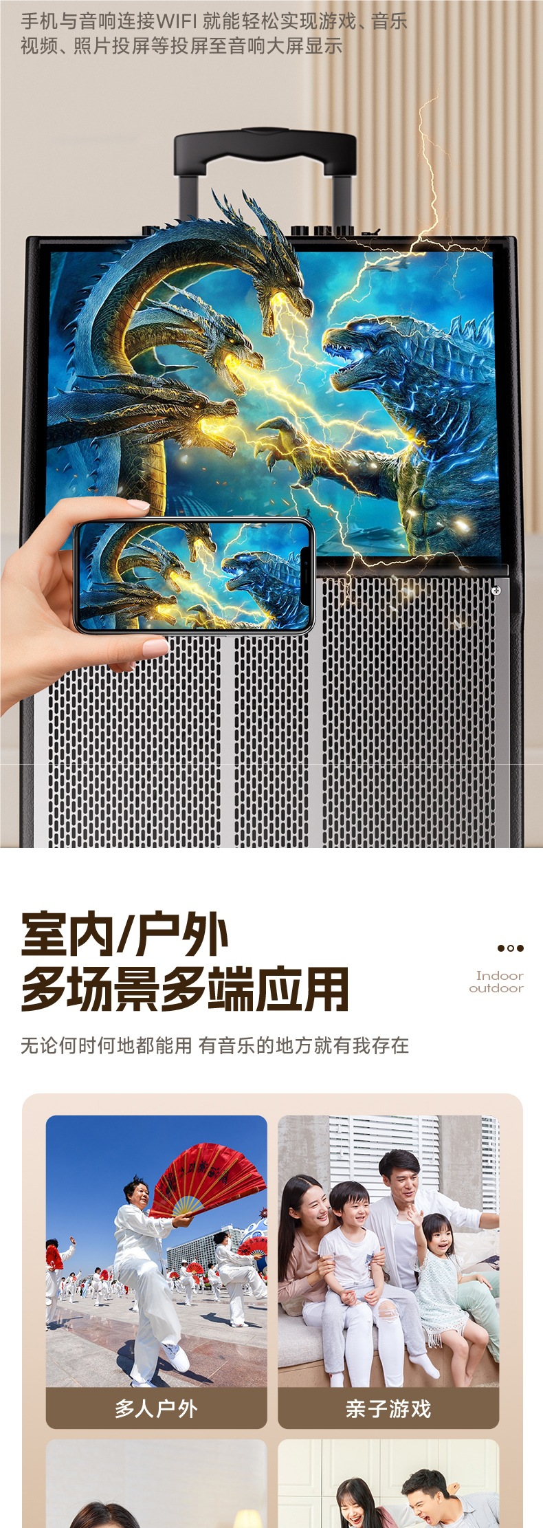 디스플레이 화면이 있는 스퀘어 댄스 오디오 야외 노래방 스피커 노래 KTV 홈 마이크 마이크 올인원 목재