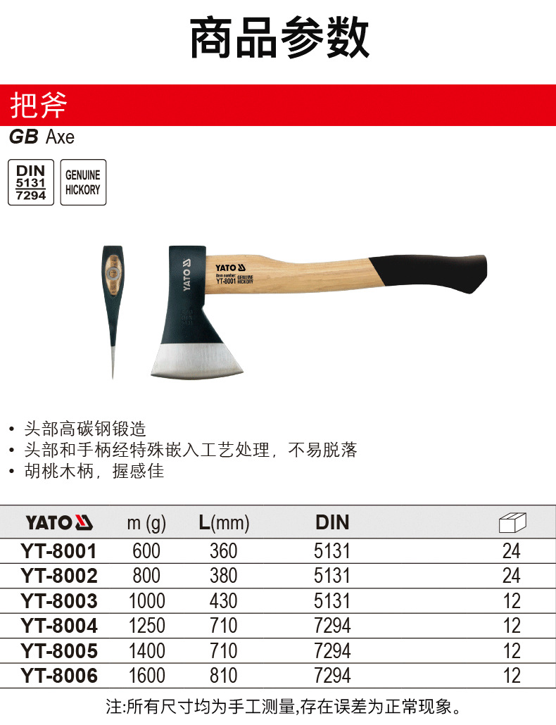YATO 도끼 장작 절단 안전 목공 도끼 목수 도끼 수제 장작 벌목 도끼