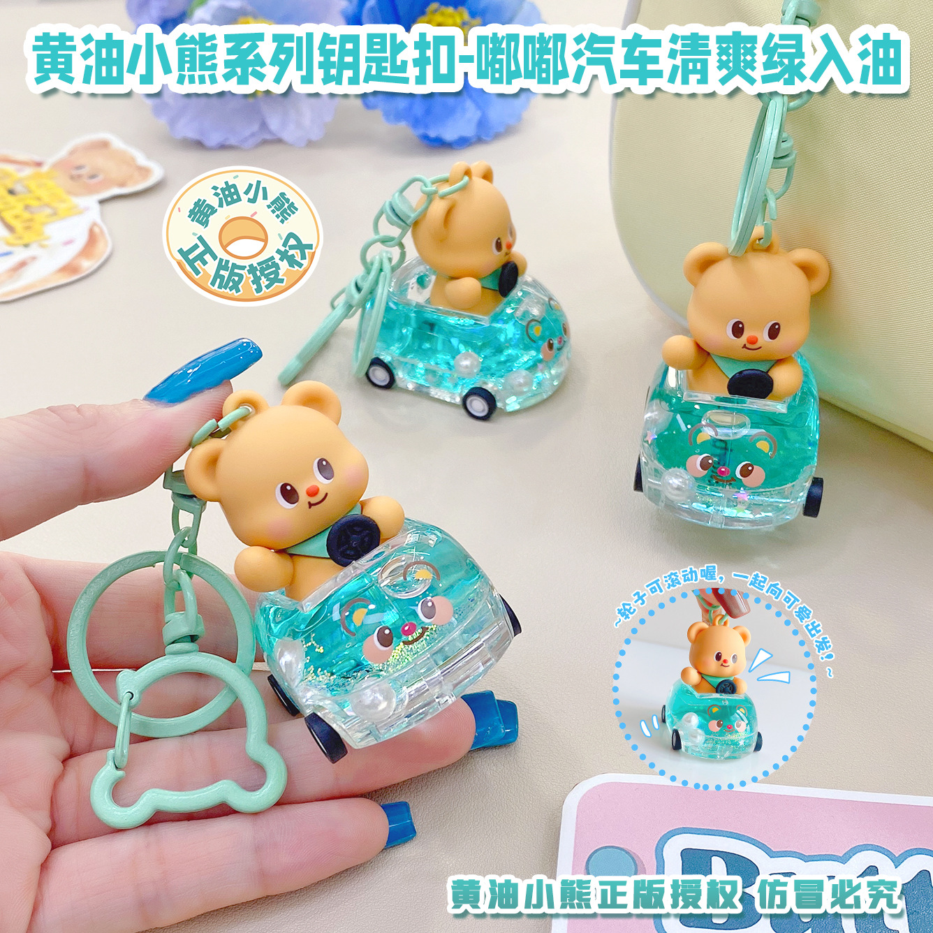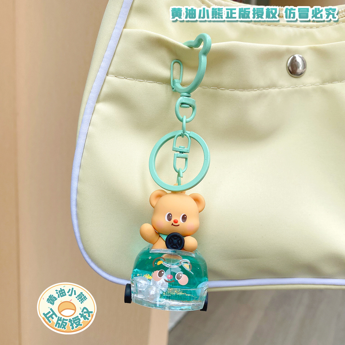 정품 버터 베어 자동차 오일 시리즈 커플 자동차 키 체인 소녀 학교 가방 펜던트 선물 펜던트 체인스토어 가기