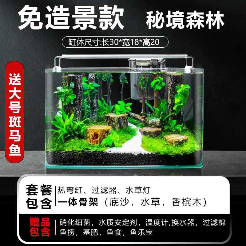 진짜 수생 잉어 탱크 수족관 작은 거실 사무실 데스크탑 홈 생태 잔디 탱크 장식 천 조경 세트스토어 가기