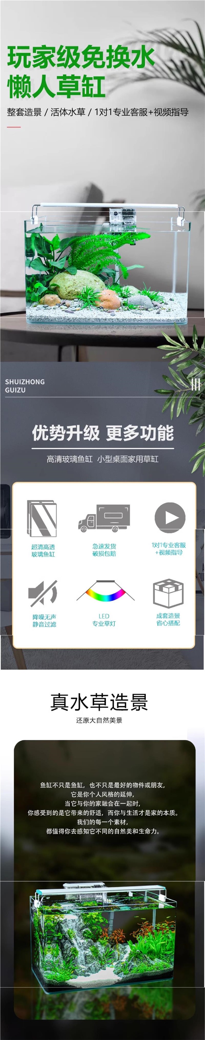 • 길이 60 폭 30 높이 35 [칭펑 모델] 수조 조경 완성 세트 무료 선물 패키지 + 가열 막대