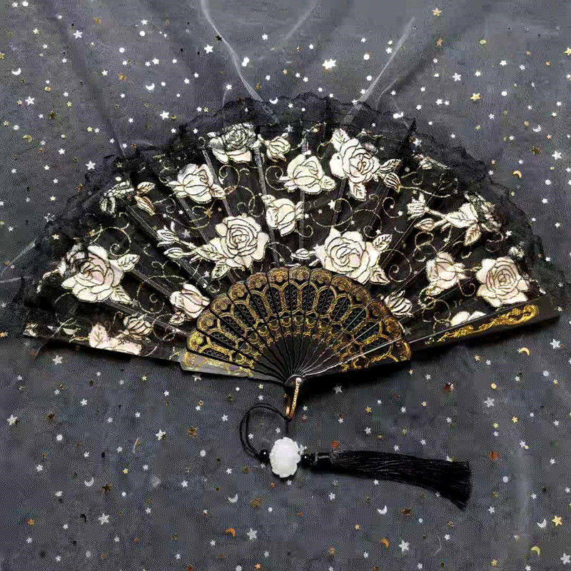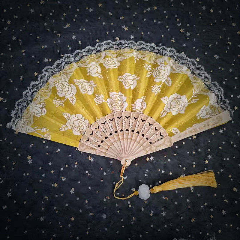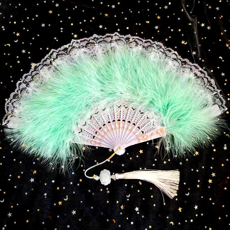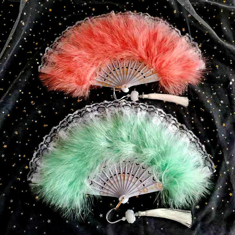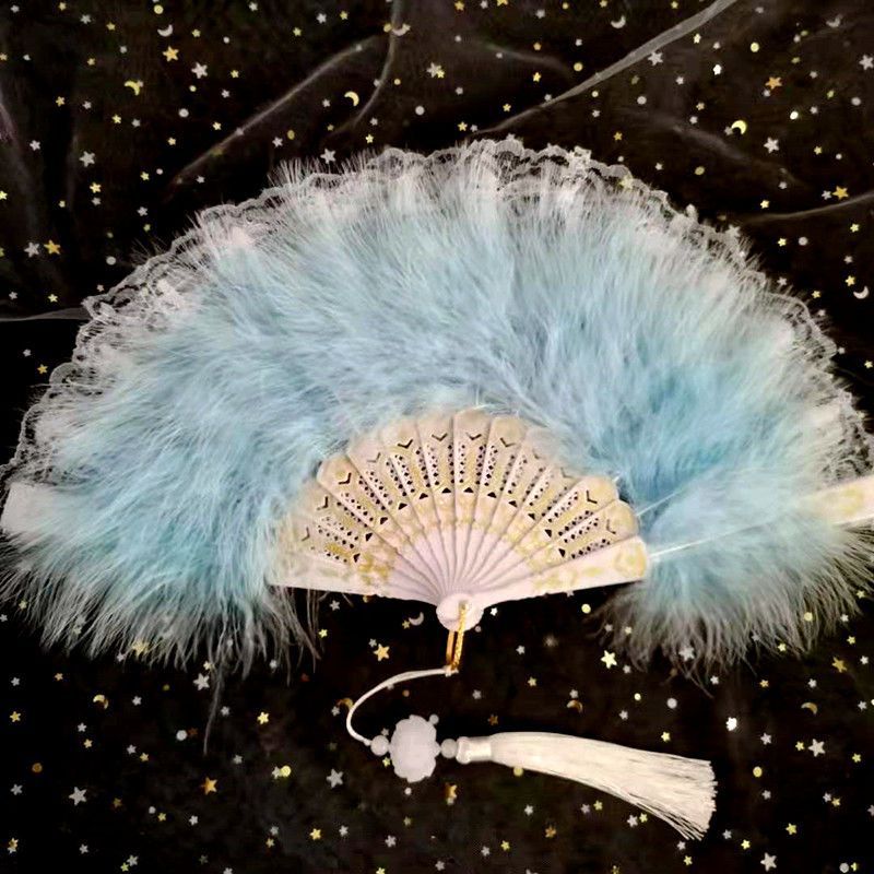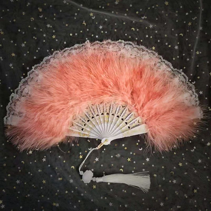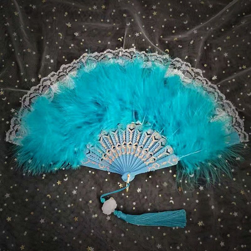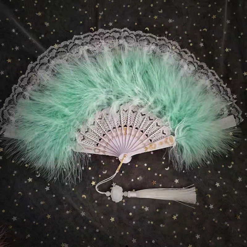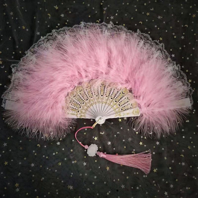 접이식 부채 로리타 댄스 공연 촬영 소품 밝은 색상의 부채 인터넷 연예인 깃털 부채 영화 및 TV 드라마 의상스토어 가기