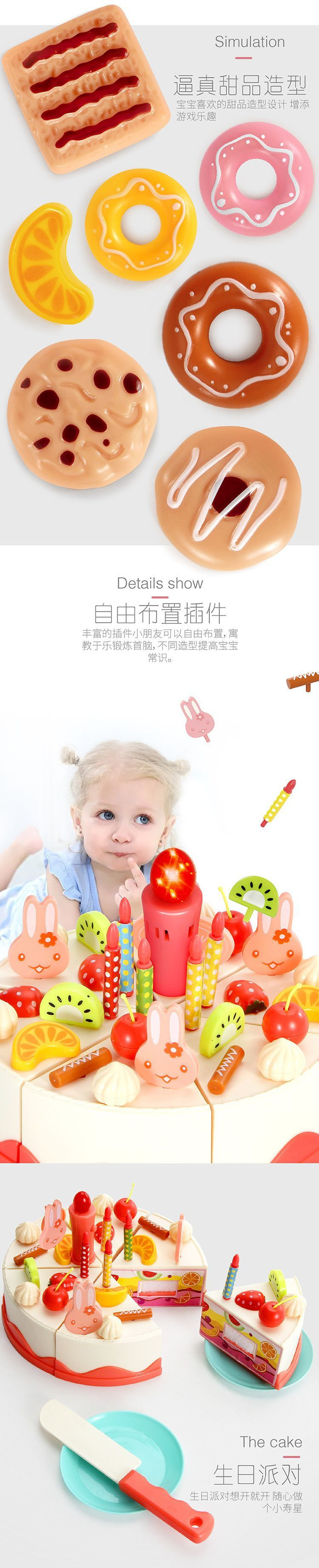 어린이 시뮬레이션 생일 케이크 장난감 세트 어린이 요리 놀이 주방 음식 과일 절단 재미스토어 가기