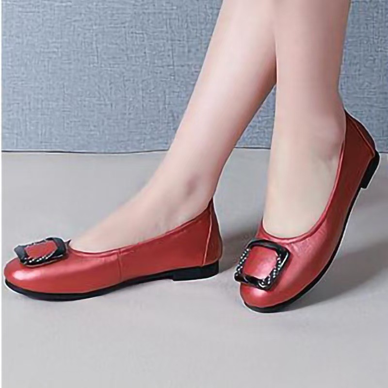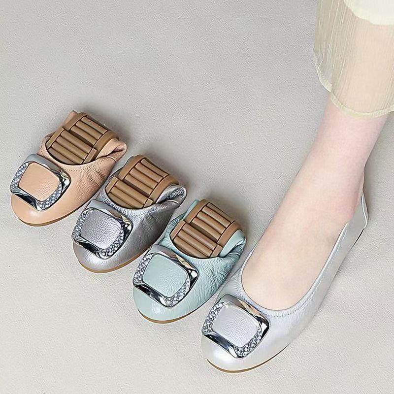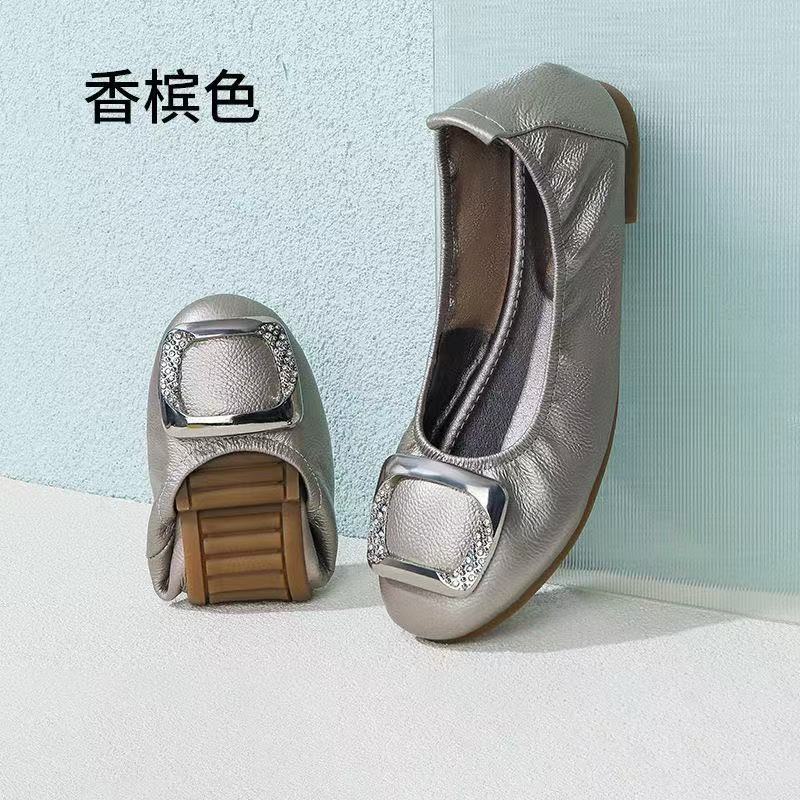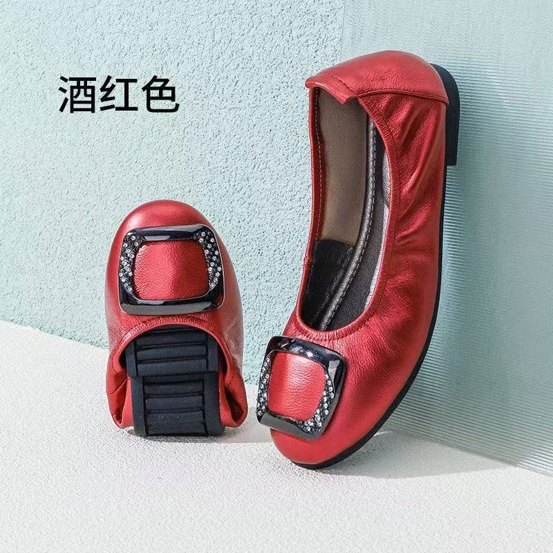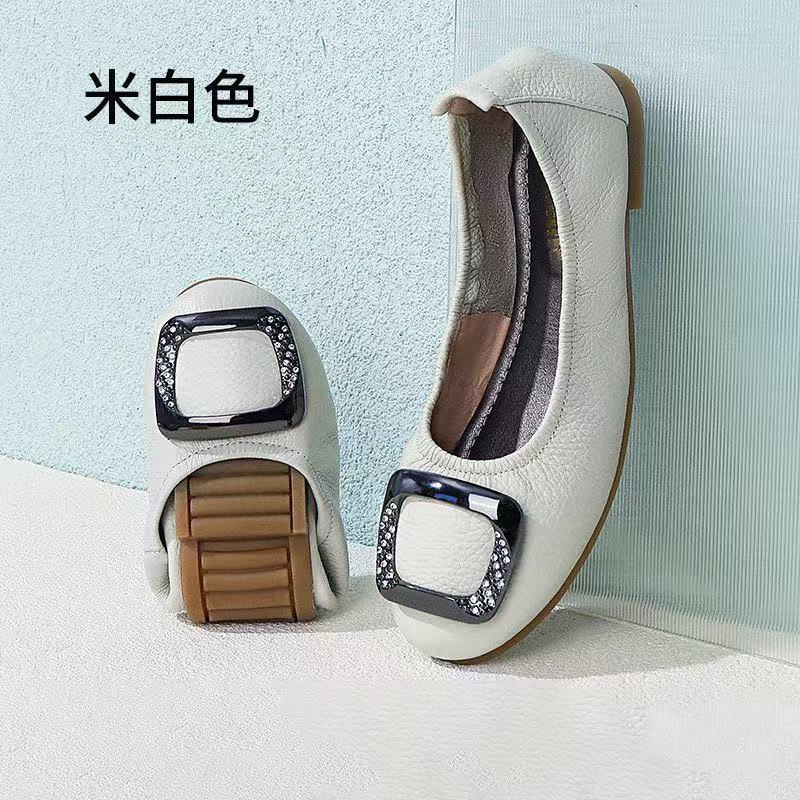 여성을위한 하이 엔드 라운드 발가락 비니 신발 봄과 여름 부드러운 밑창 2025 새로운 엄마 플랫 신발 라이트 입 모조 다이아몬드 계란말이 신발스토어 가기