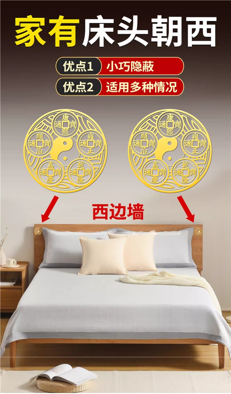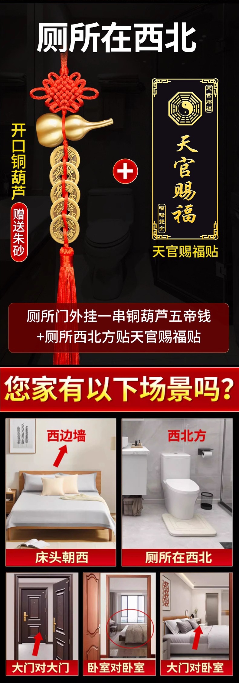 침대 옆에 서쪽을 향한 안렌 물병, 천관이 주는 축복, 문과 문 사이의 펜던트, 북서쪽의 화장실