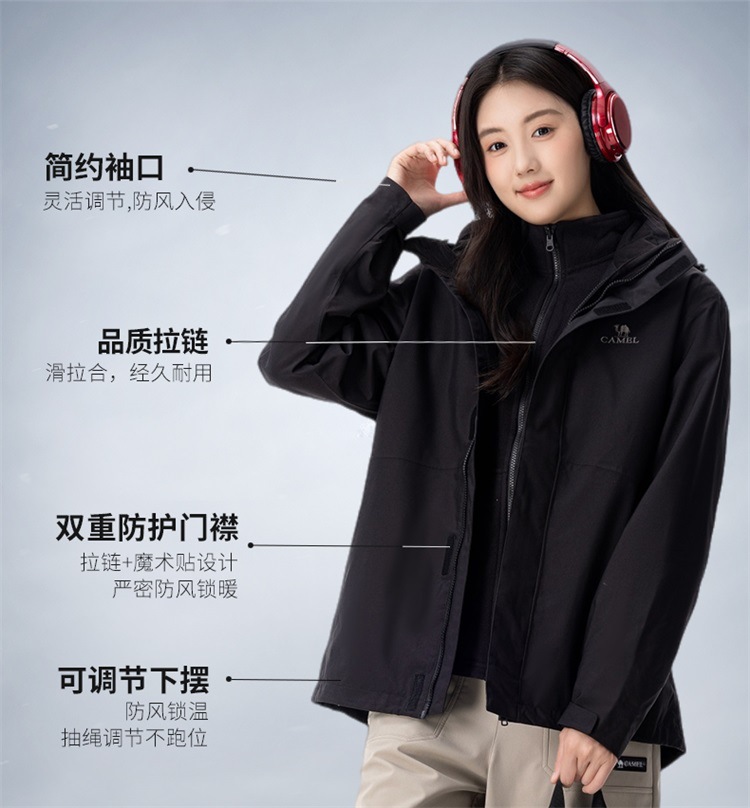 CAMEL 쓰리인원 재킷 보급형 아웃도어 등산복 방풍 및 방수 플리스 라이너 재킷 신제품