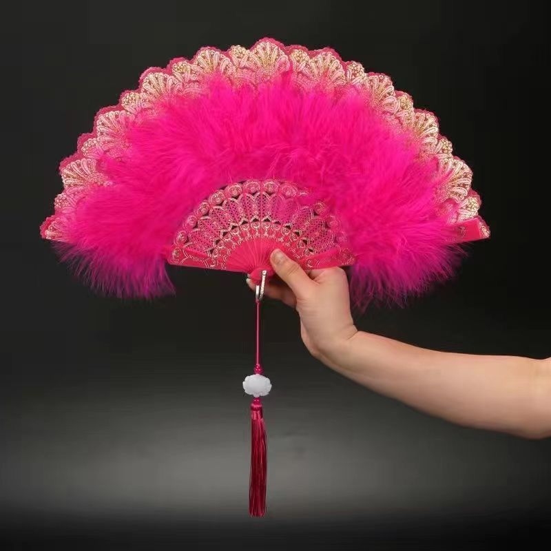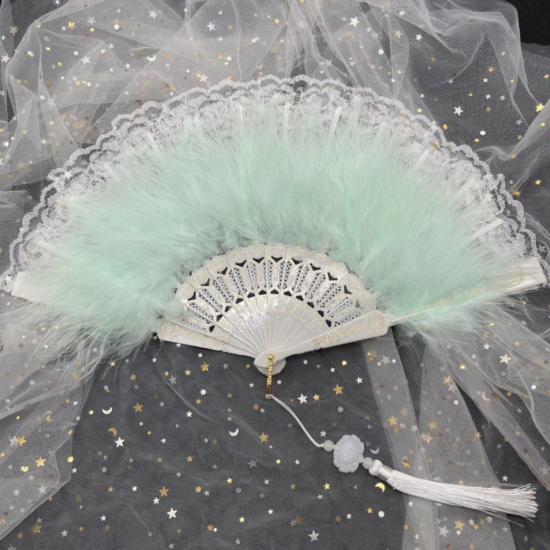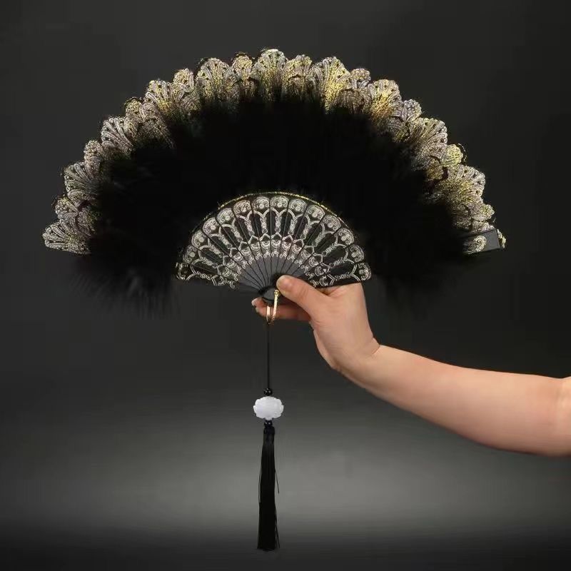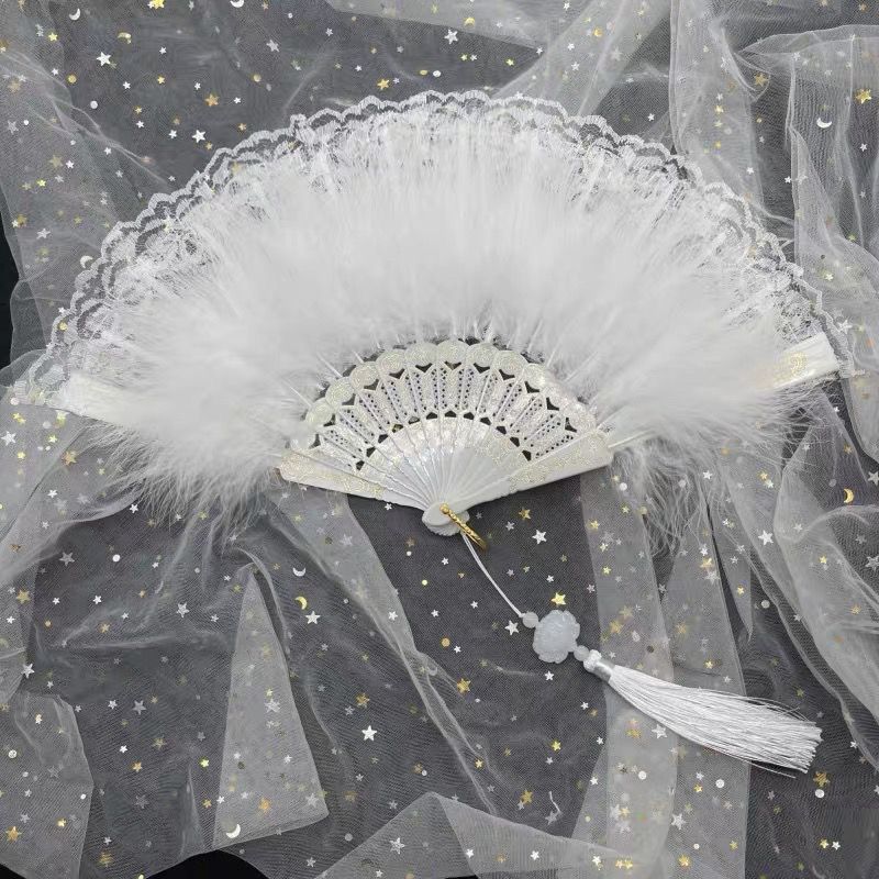댄스 레이스 Hanfu 요정 깃털 팬 복고풍 향수 로리타 팬 의상 패션쇼 인터넷 연예인 치파오 접는 팬
