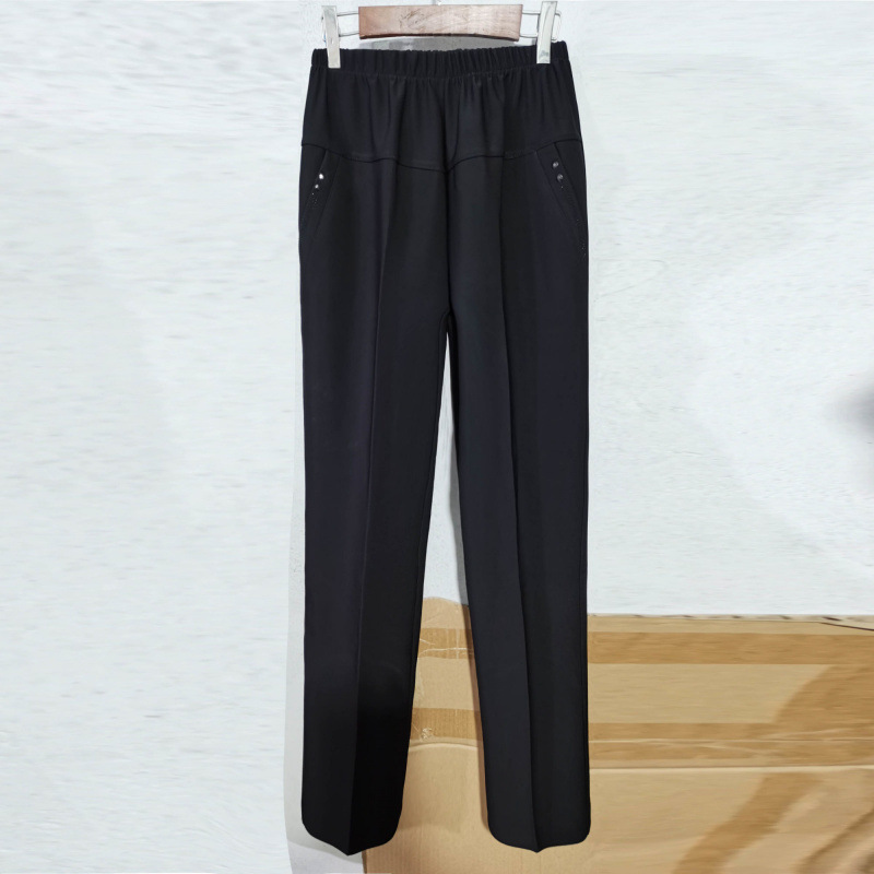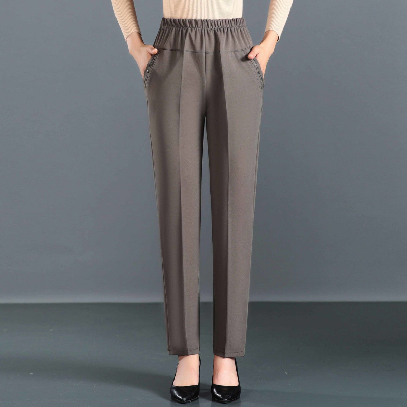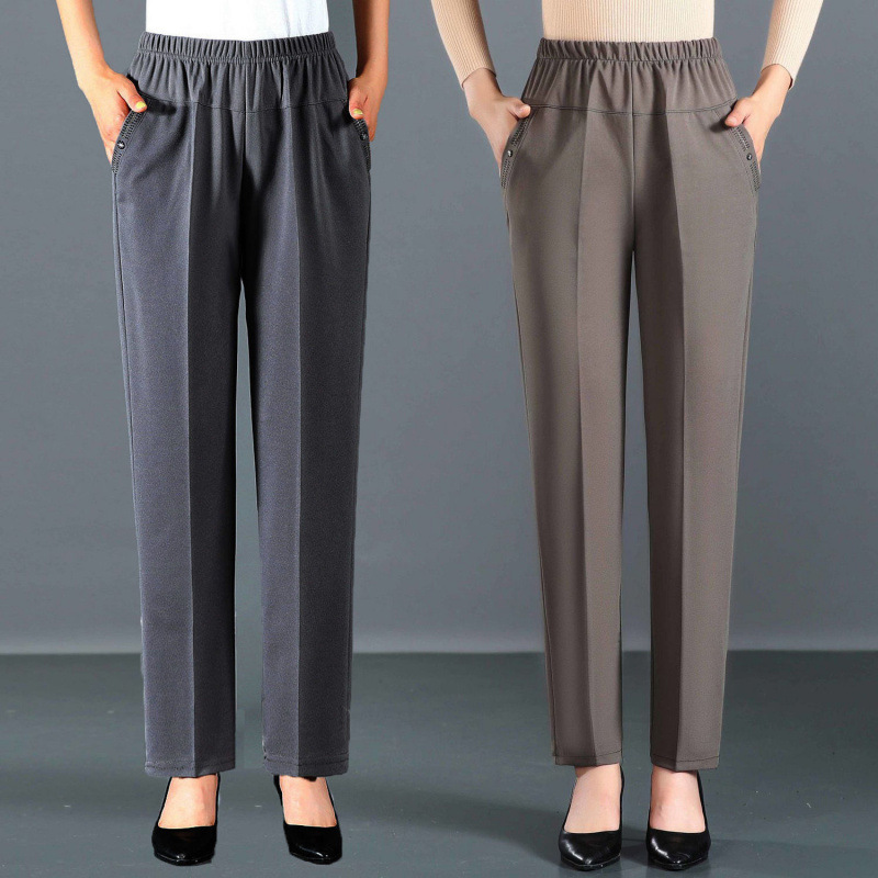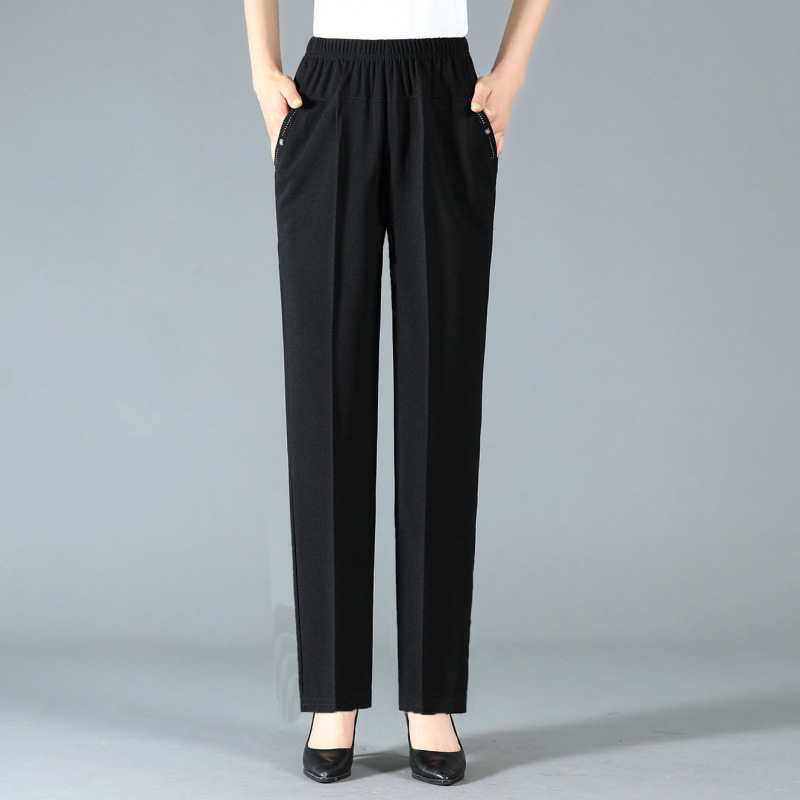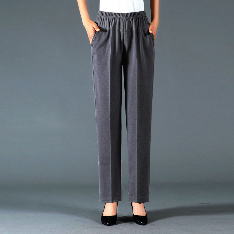 중년 및 노년 여성을 위한 여름 얇은 바지, 하이 웨이스트 신축성 있는 대형 엄마 바지, 단색 신축성 있는 허리 대형 중년 여성 바지스토어 가기
