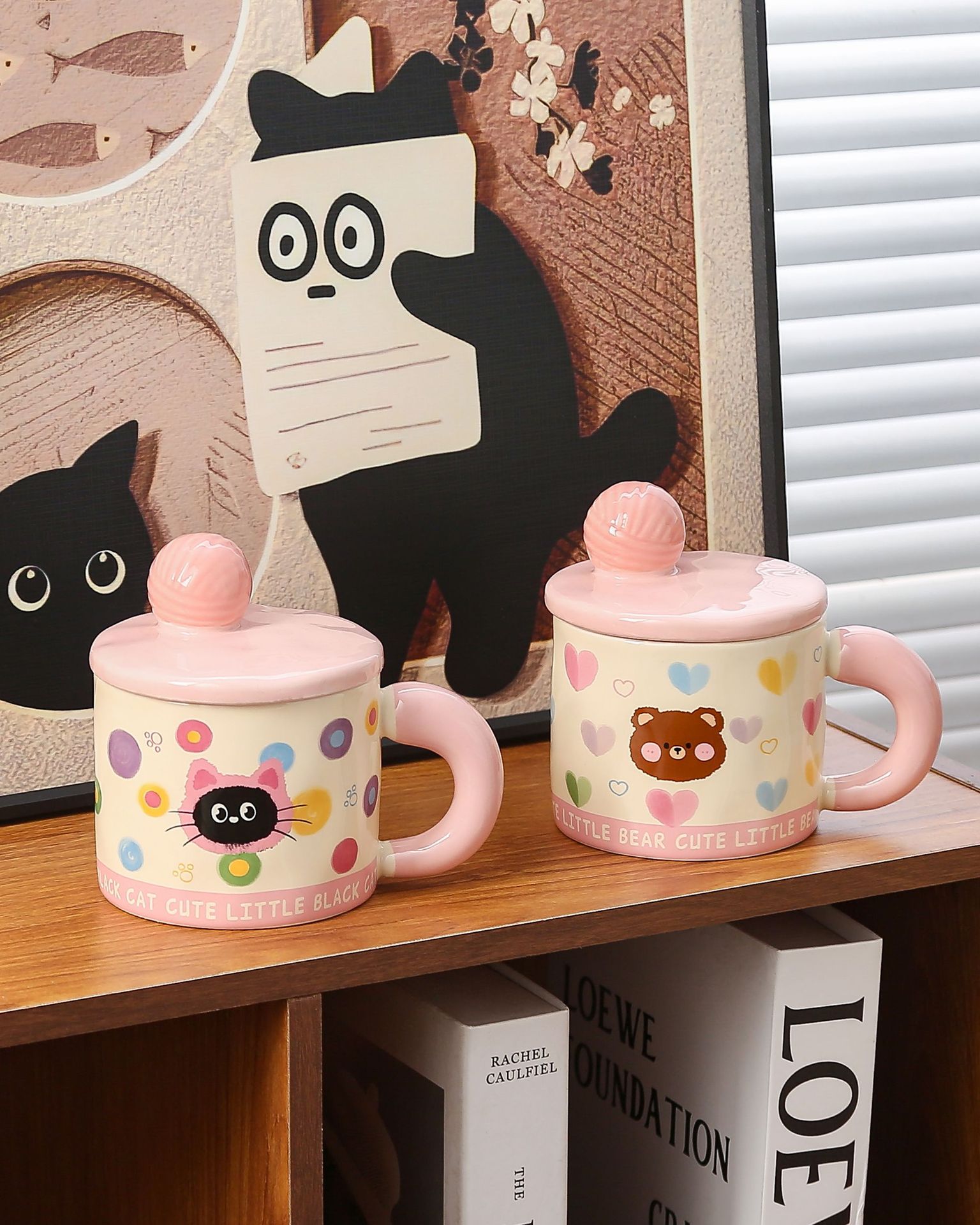 귀여운 모직볼 머그, 뚜껑이 있는 멋진 소녀들을 위한 세라믹 머그, 기념품 아침 우유컵, 뚜껑이 있는 물컵스토어 가기