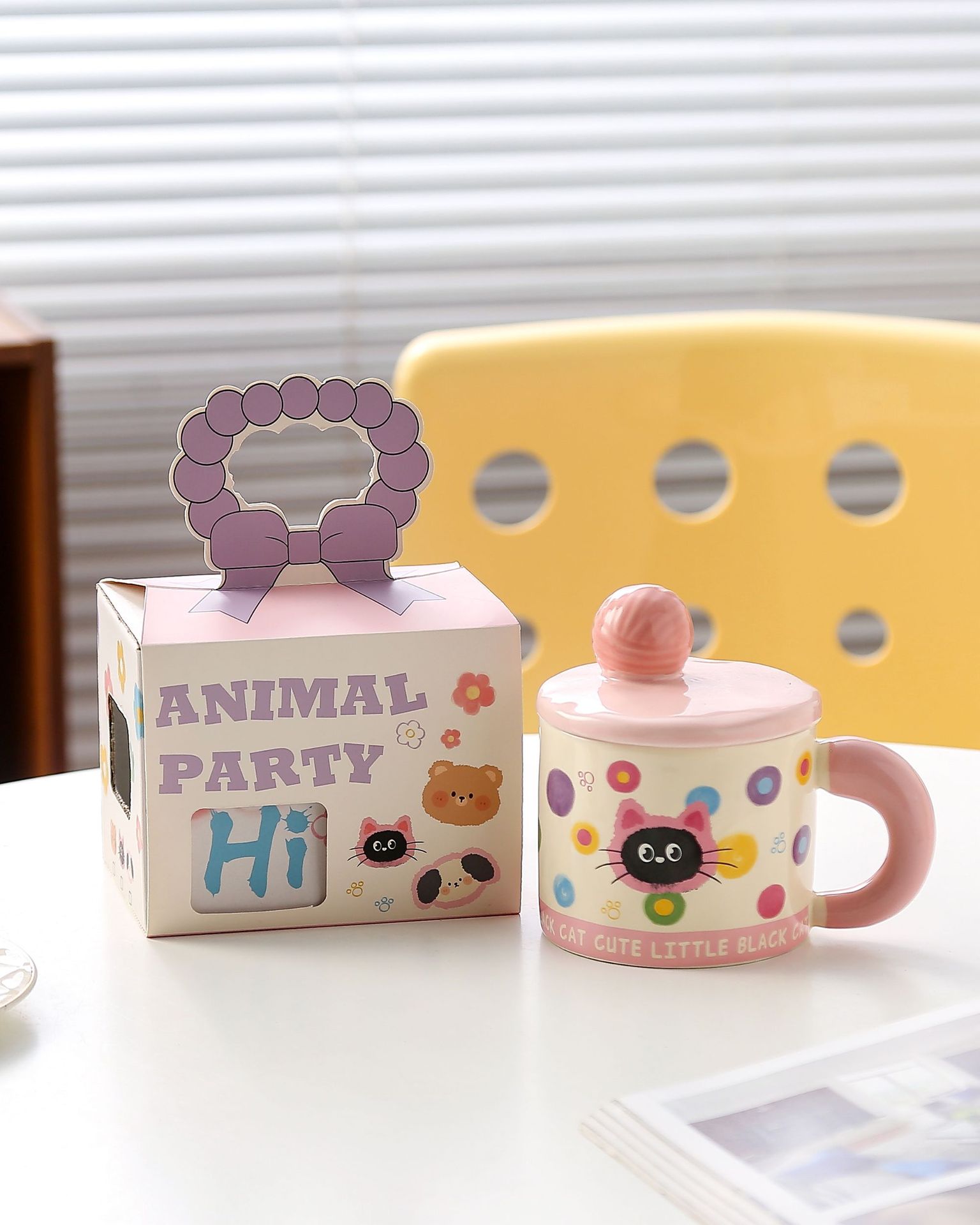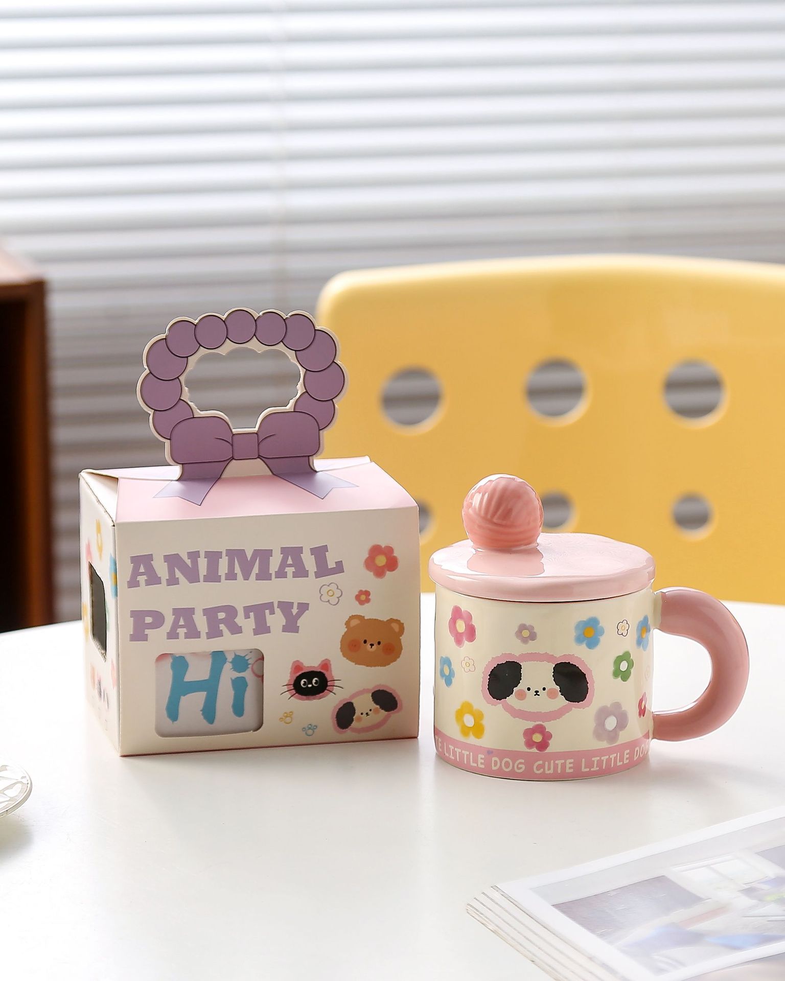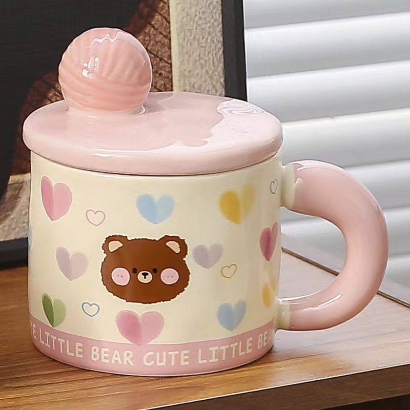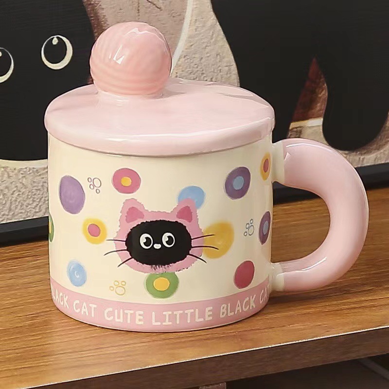 귀여운 모직볼 머그, 뚜껑이 있는 멋진 소녀들을 위한 세라믹 머그, 기념품 아침 우유컵, 뚜껑이 있는 물컵
