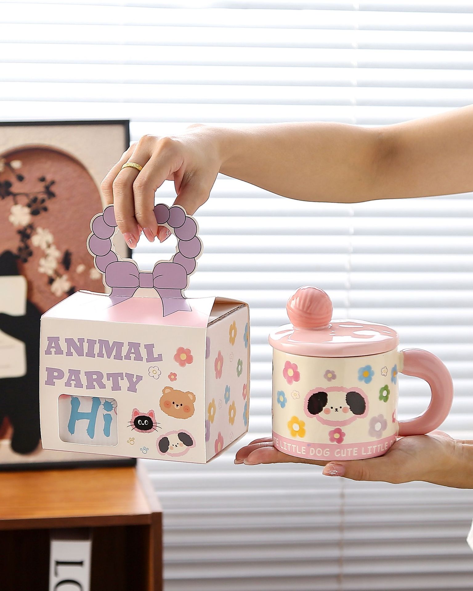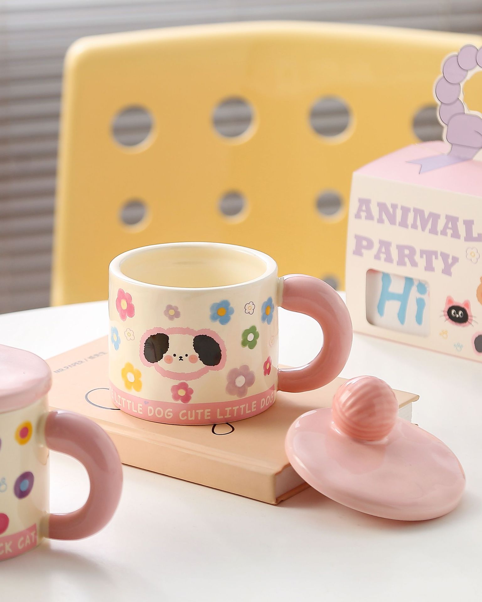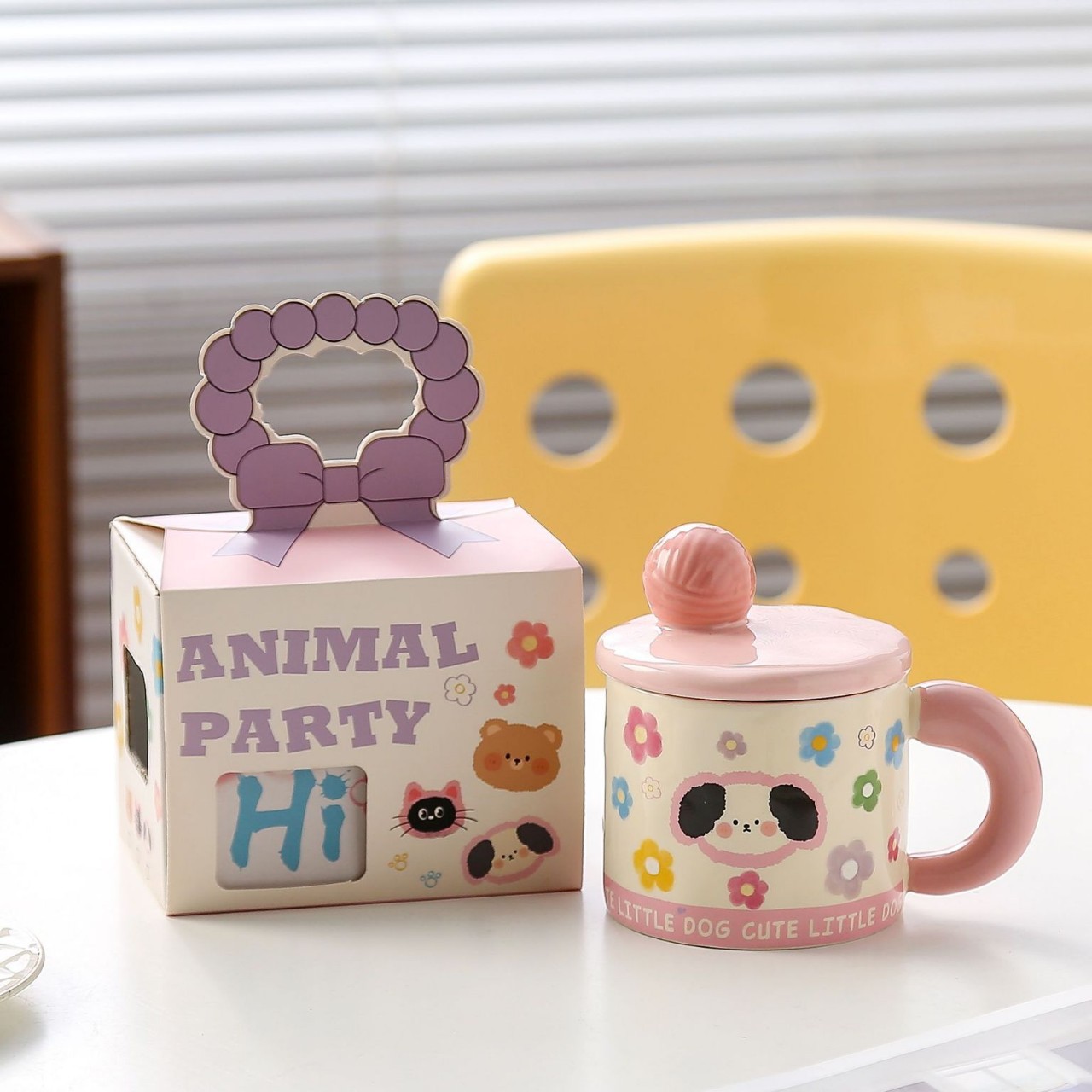 귀여운 모직볼 머그, 뚜껑이 있는 멋진 소녀들을 위한 세라믹 머그, 기념품 아침 우유컵, 뚜껑이 있는 물컵