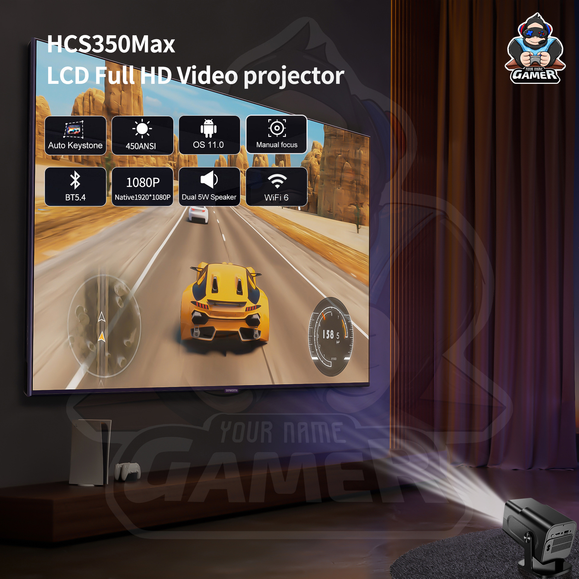 국경 간 안드로이드 HCS350pro+ 게임 프로젝터 wifi 스마트 게임 콘솔 휴대용 홈 HD 프로젝터