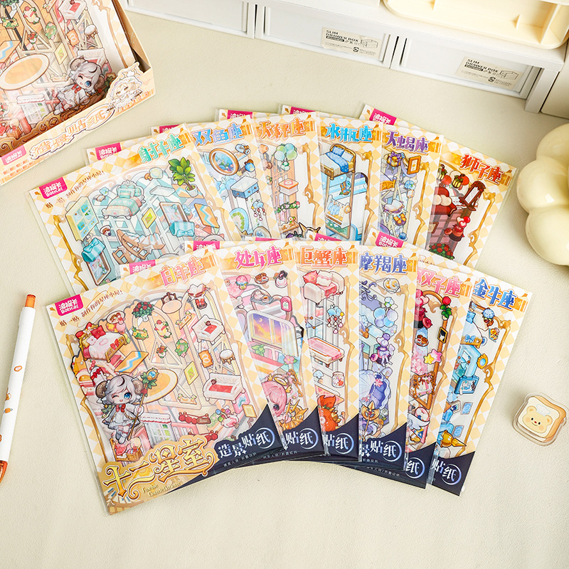 12 별자리 미니어처 조경 스티커 3D 입체 캐빈 장면 장식 스티커 어린이 DIY 장면 스티커스토어 가기