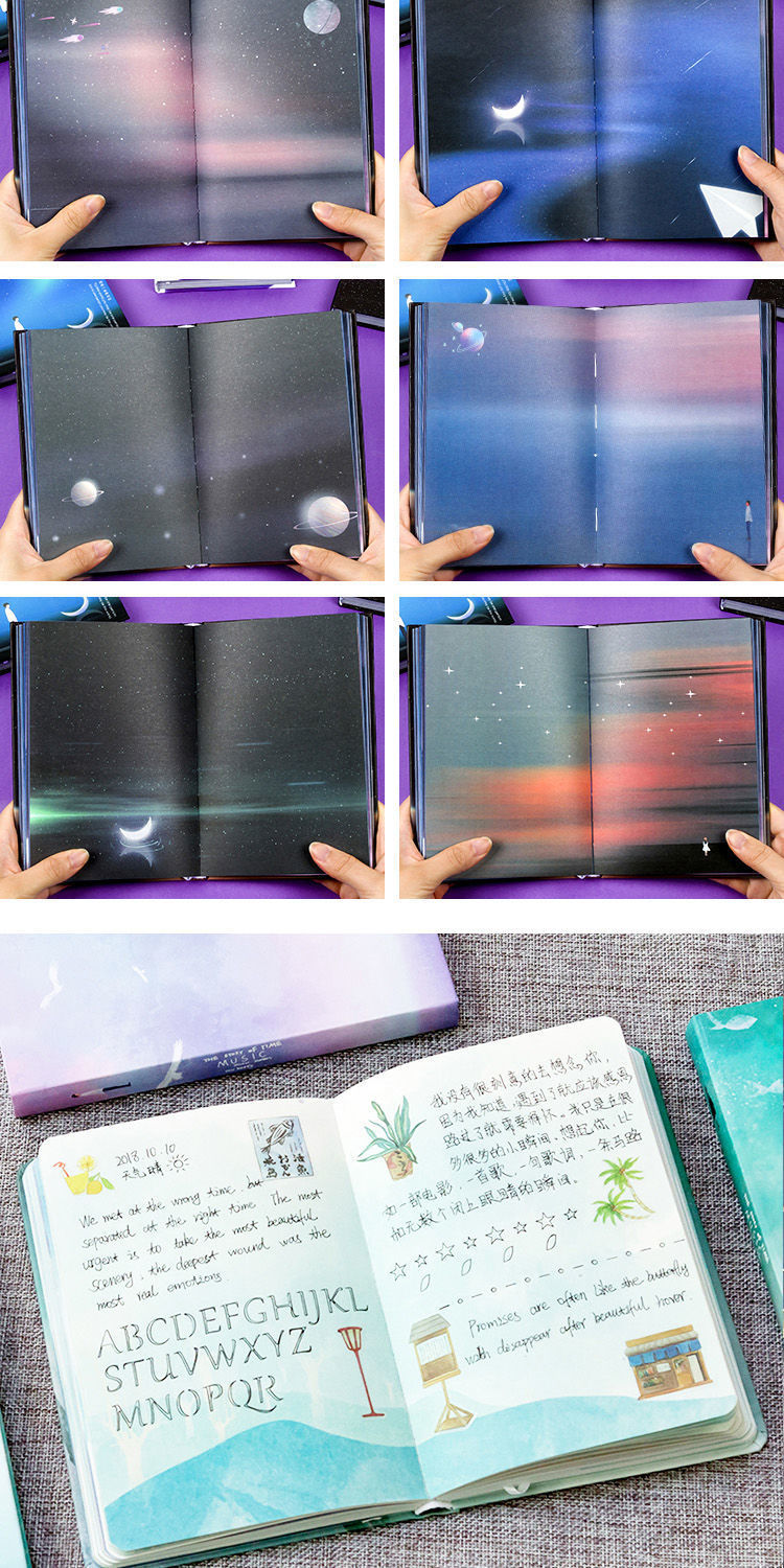 레트로 크리 에이 티브 컬러 페이지 일러스트 핸드북 일기 노트 문구 A5 두꺼운 한국어 버전 행성 별이 빛나는 하늘