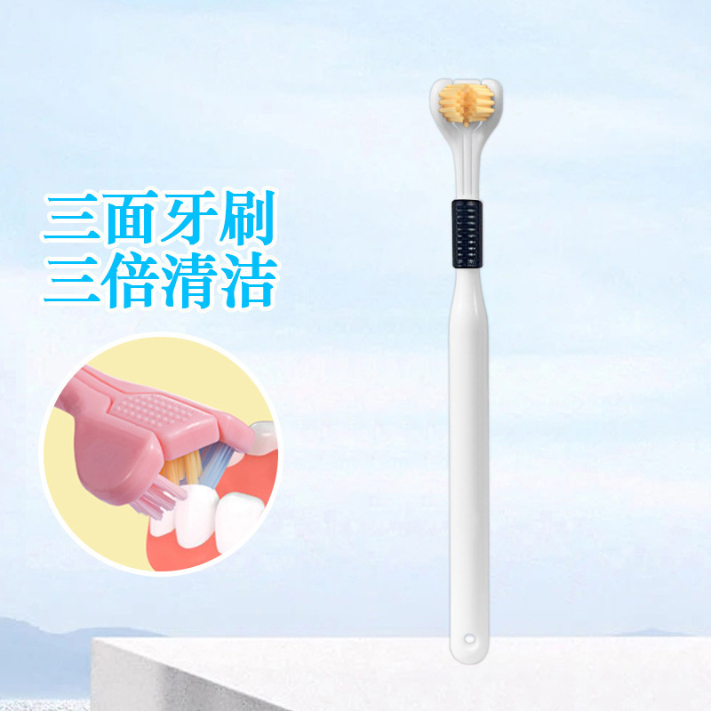 알리나의 인기 있는 3면 칫솔, 부드러운 강모, 성인용 혀 긁기, 3헤드 U자형 마카롱 컬러, 공장 직판 418스토어 가기