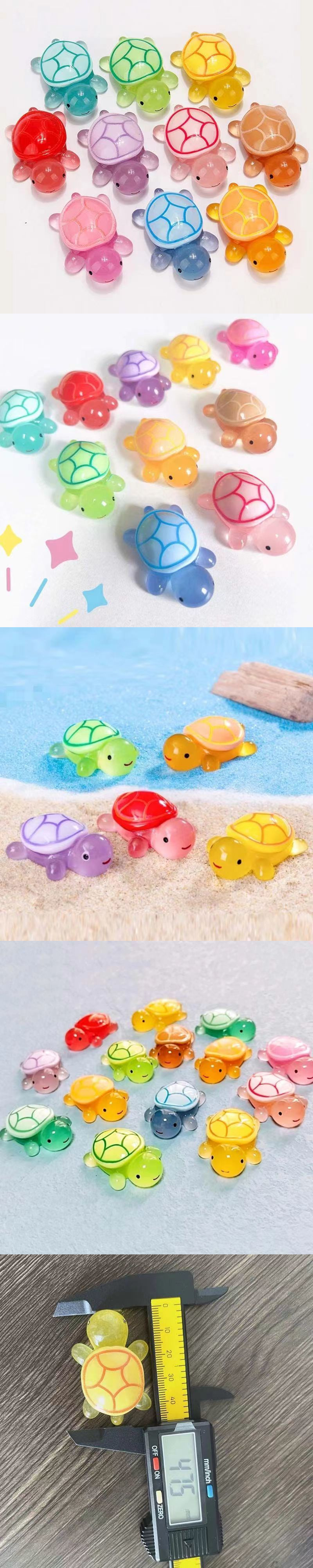 Diy 빛나는 색상 작은 거북이 수지 시뮬레이션 큰 거북이 장식품 어린이 장난감스토어 가기