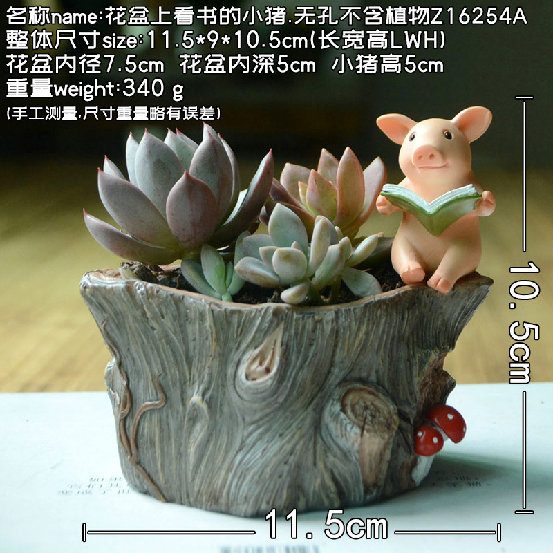 • 화분에 독서하는 작은 돼지 구멍도 없고 식물도 없습니다.