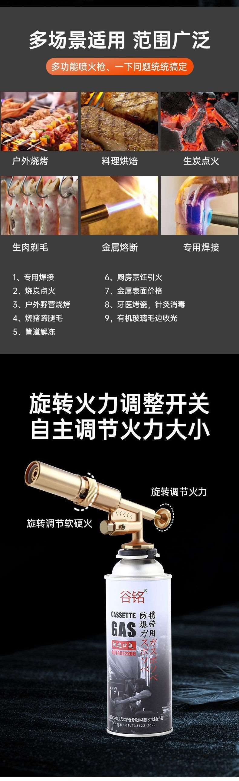 휴대용 화염 분사기, 돼지털 연소용 화염 분사기, 가스 탱크, 액화 가스 고온 용접기, 구리 건, 요리 건, 화력스토어 가기