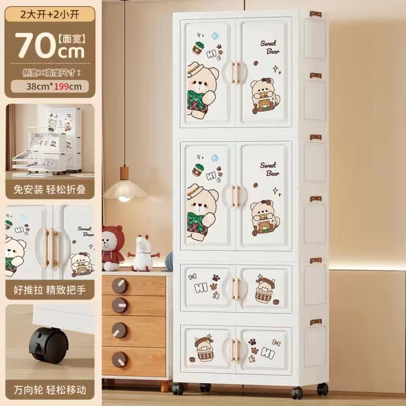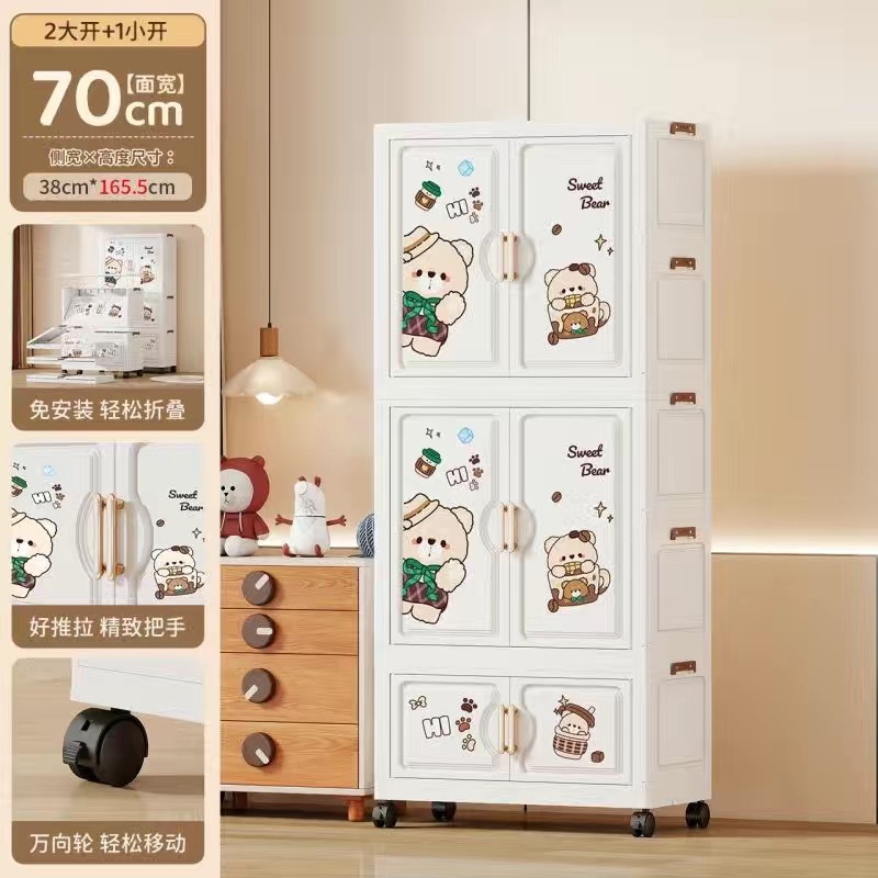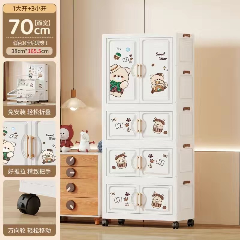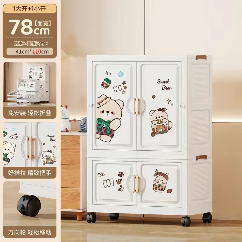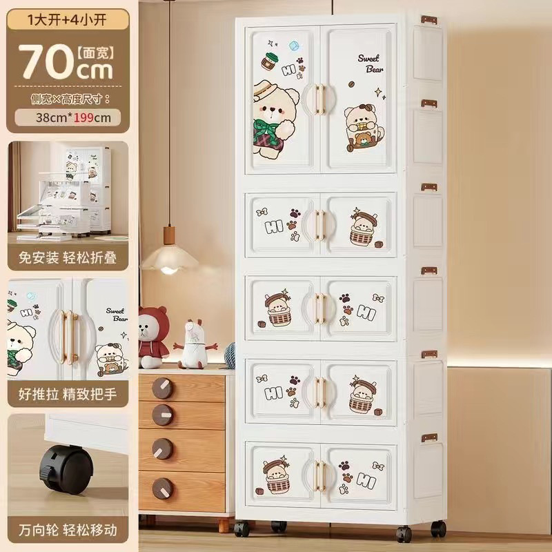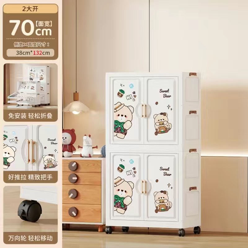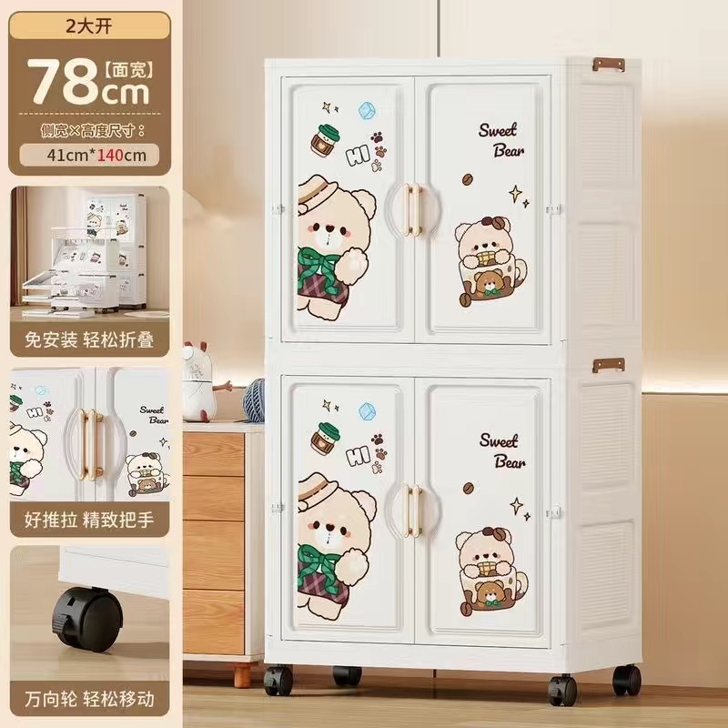 만화 설치가 필요없는 접이식 양문 옷장 가정용 아기 장난감 보관 캐비닛 아동복 보관 캐비닛스토어 가기