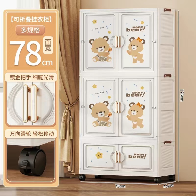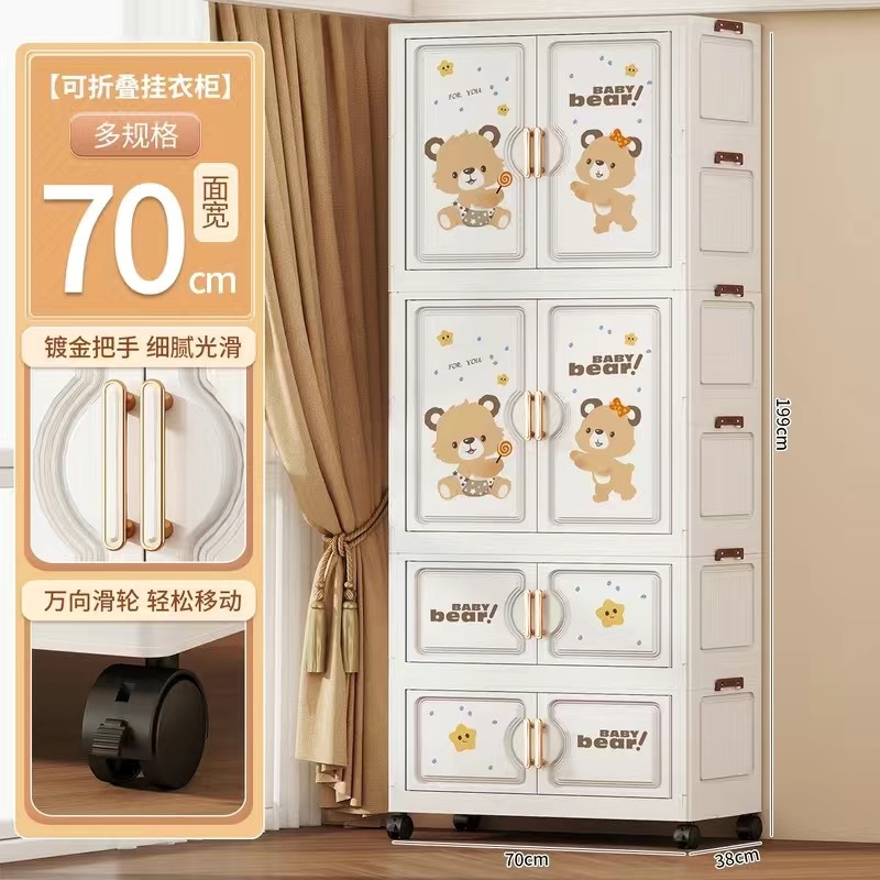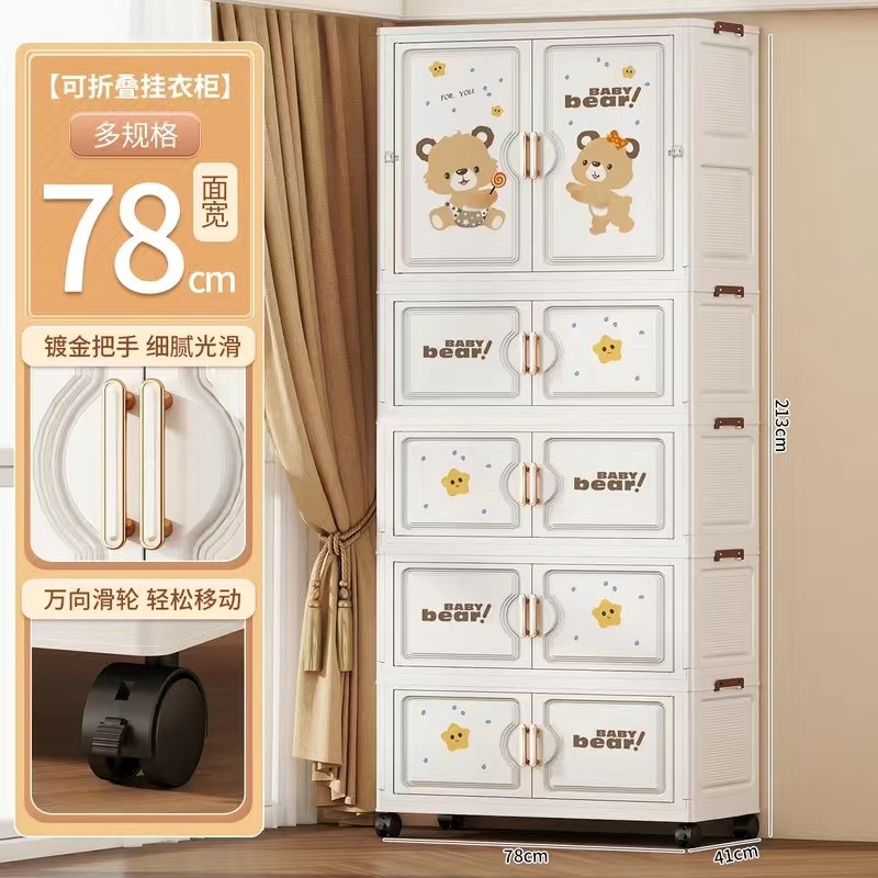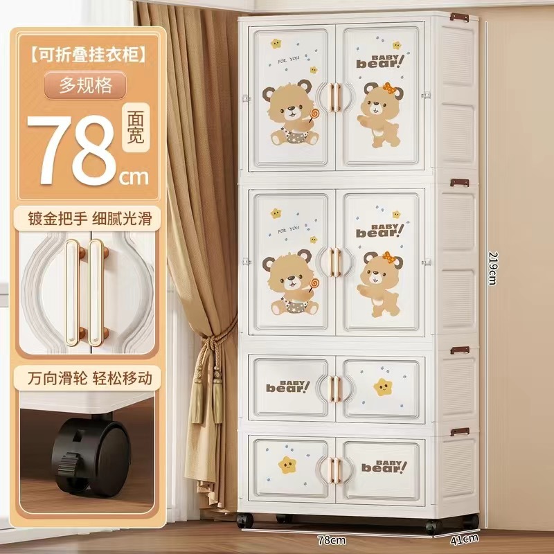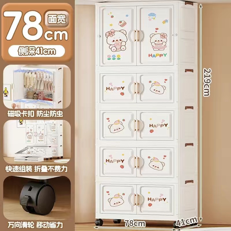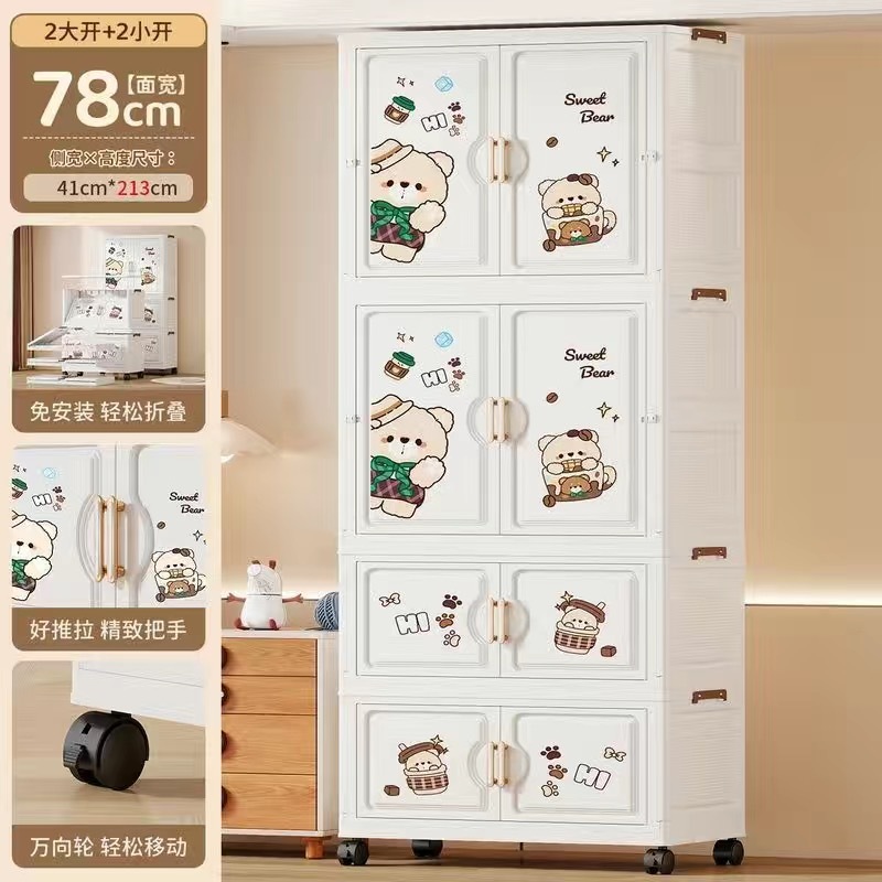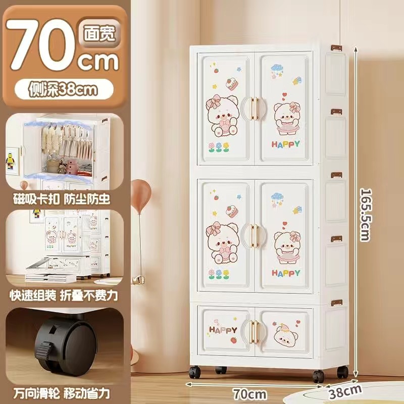 만화 설치가 필요없는 접이식 양문 옷장 가정용 아기 장난감 보관 캐비닛 아동복 보관 캐비닛스토어 가기