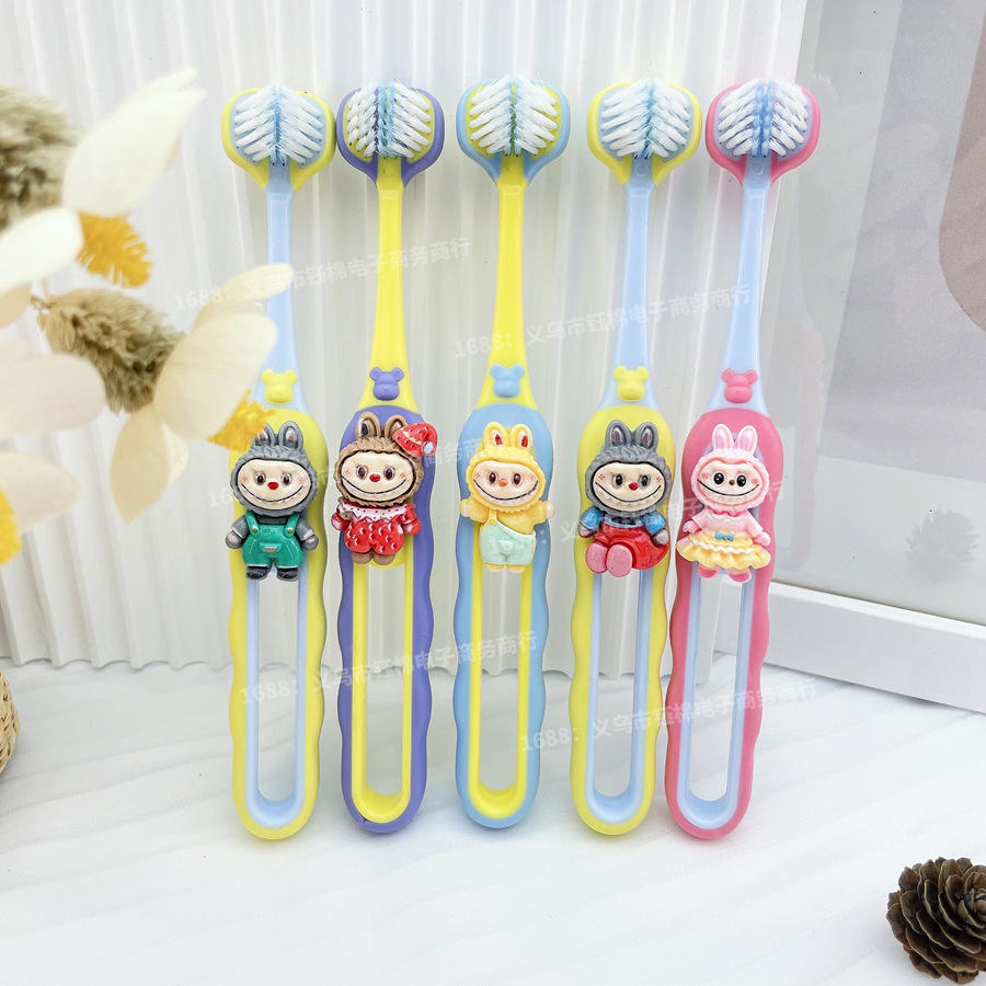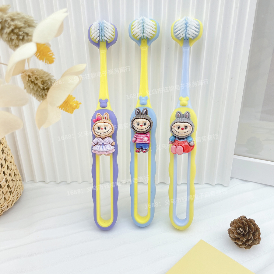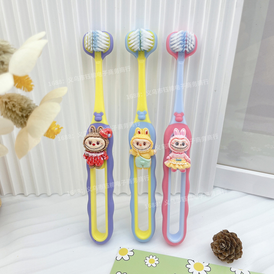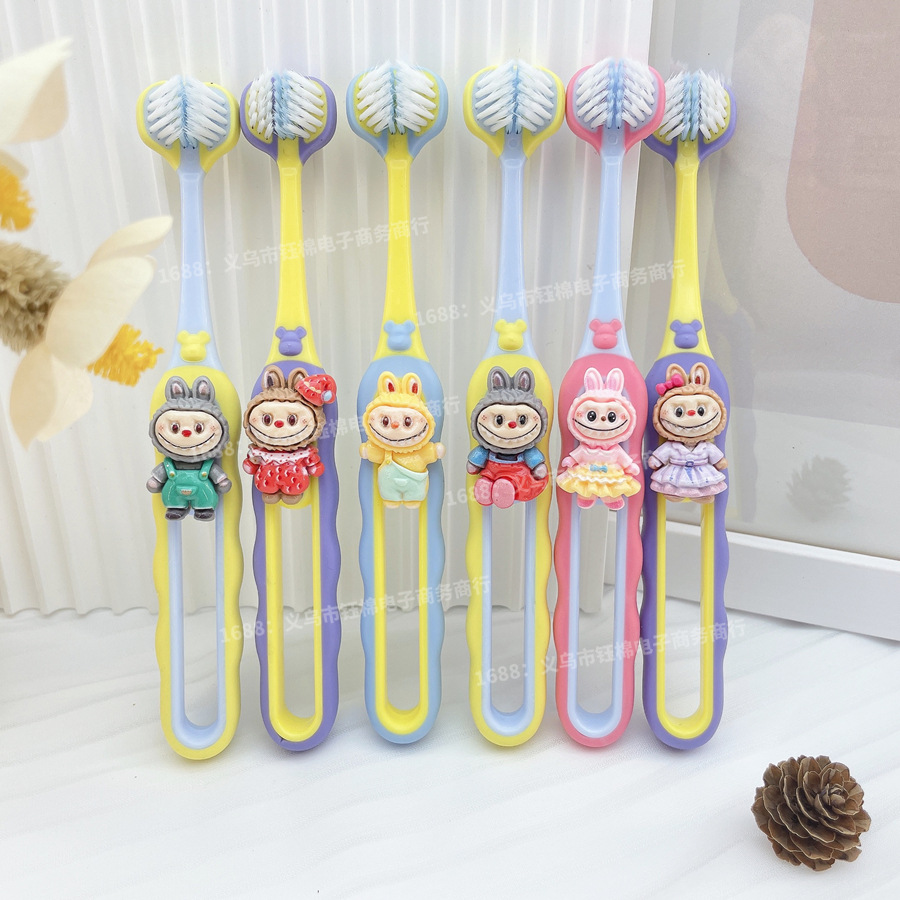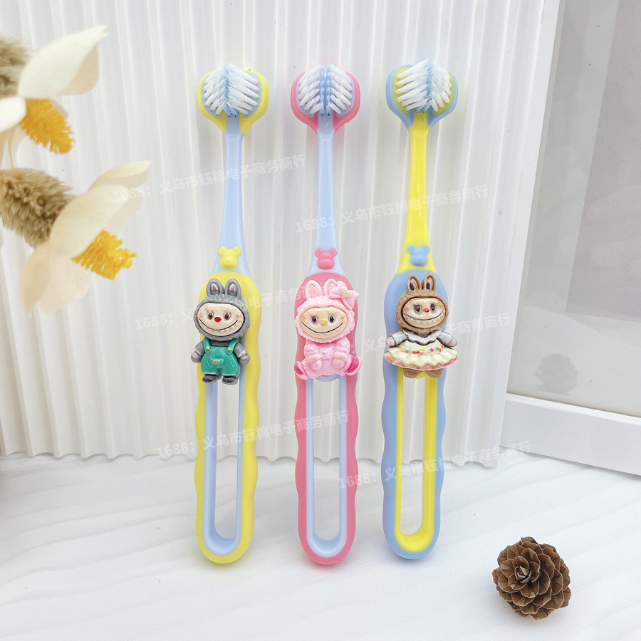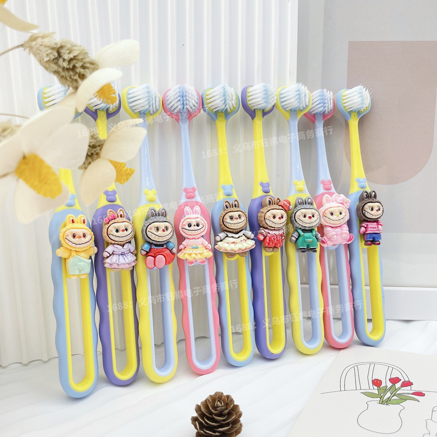 라부부 어린이 칫솔 3~6~12세 U자형 완전 포장 라부부 부드러운 모 어린이 삼면 칫솔