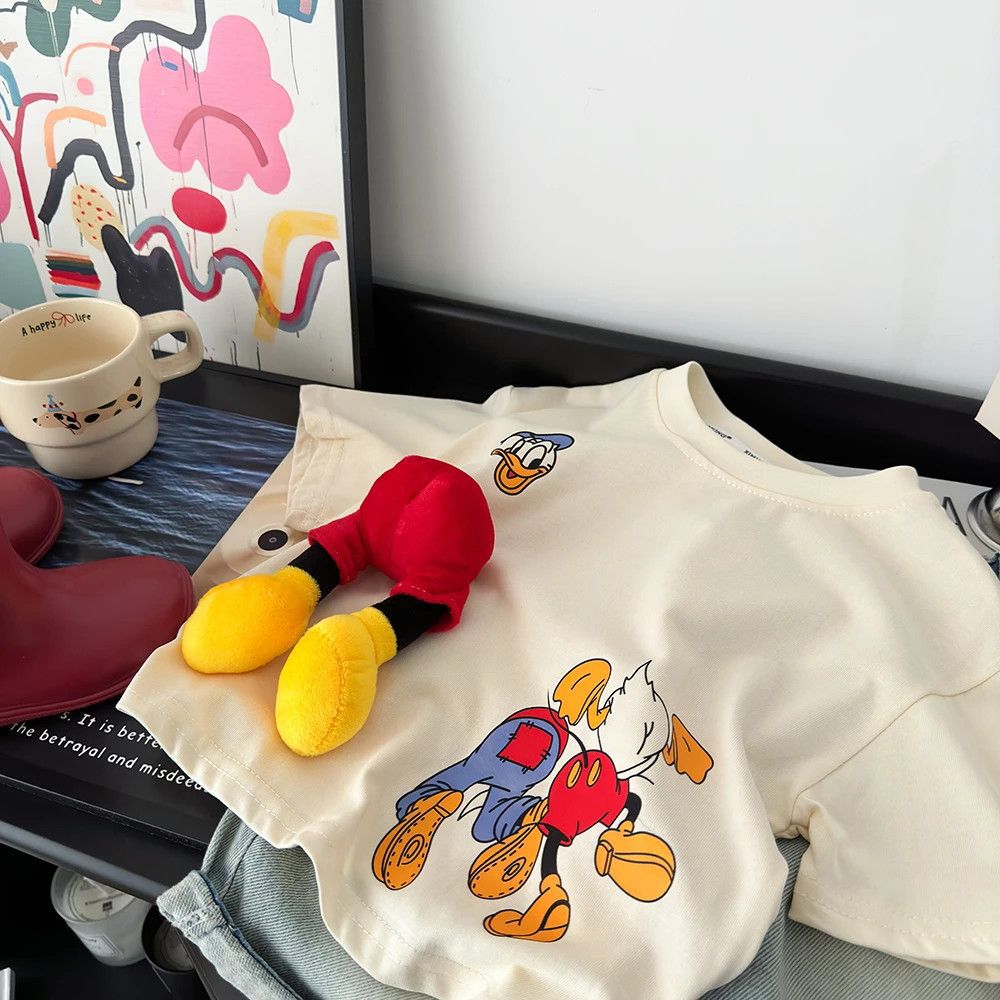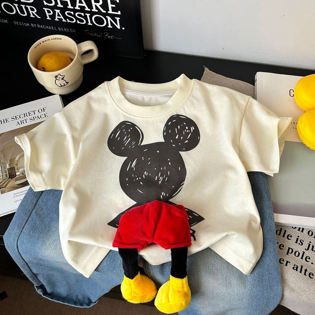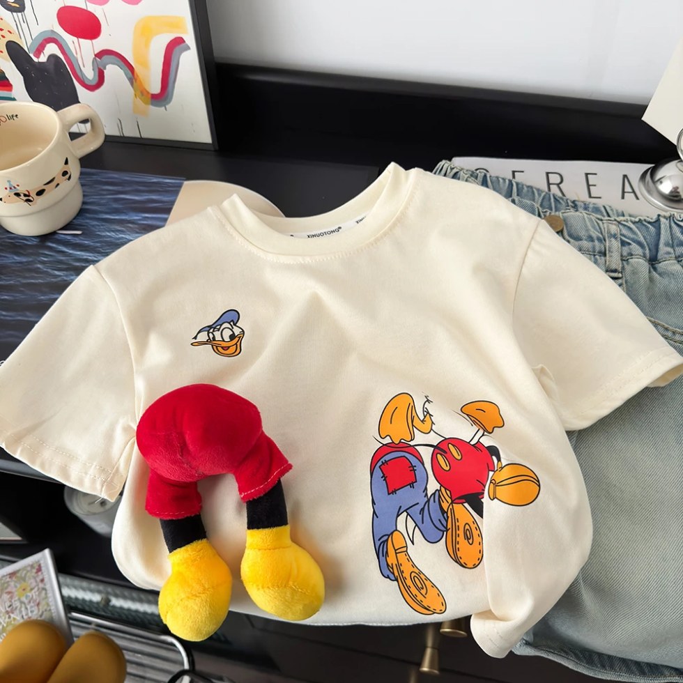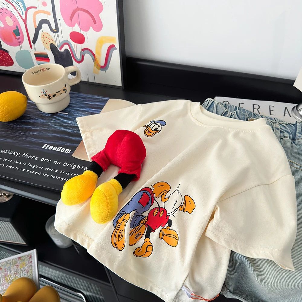 2025 새로운 여름 미키 입체 인형 티셔츠 달콤한 쿨 팬더 만화 프린트 한국어 버전 부모-자식 반팔스토어 가기