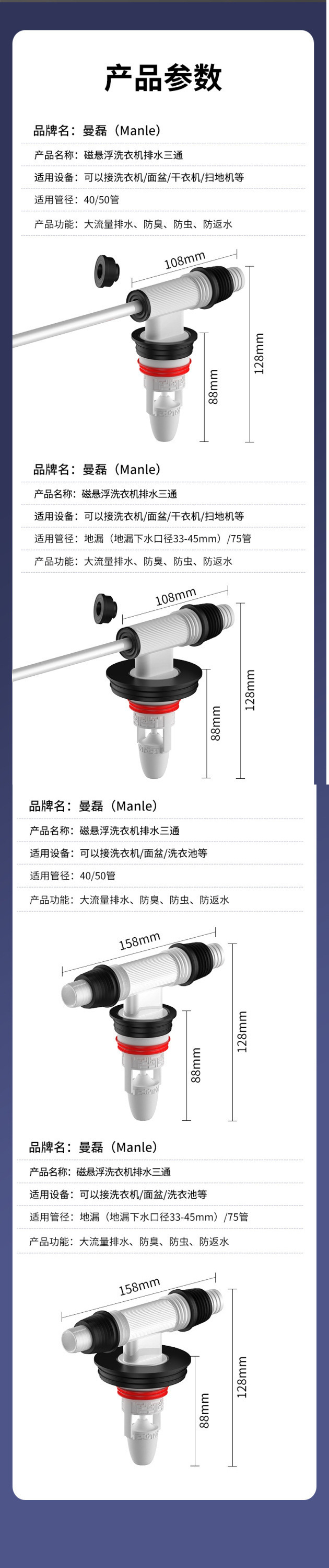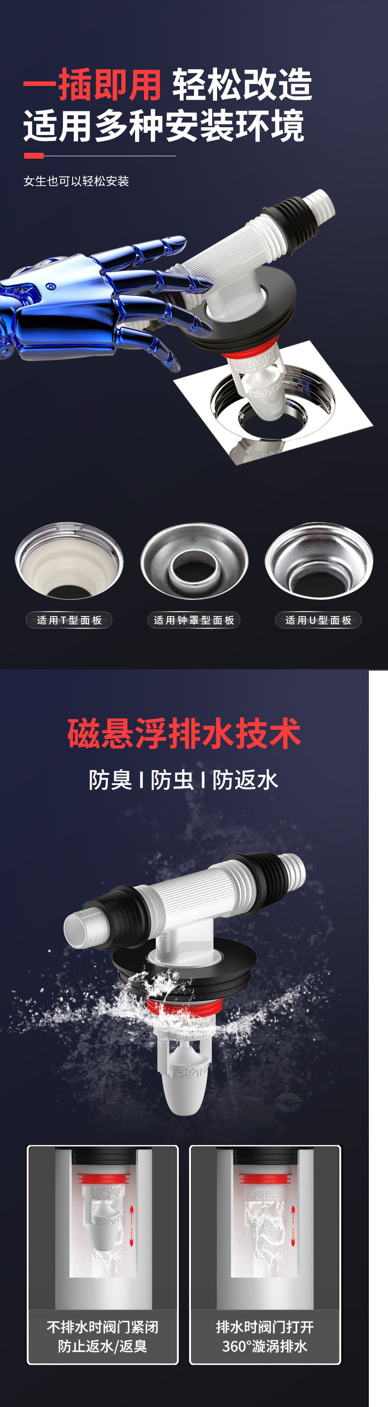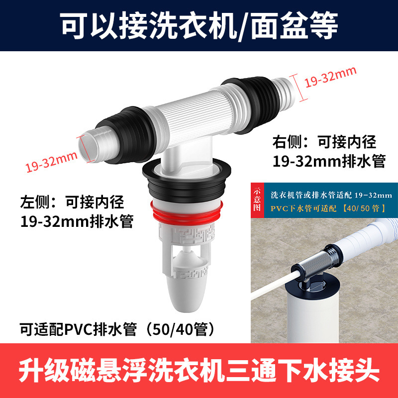 마그네틱 서스펜션 세탁기 바닥 배수구 3방향 2-in-1 배수관 특수 커넥터로 벌레 방지, 냄새 방지 및 오버플로 방지