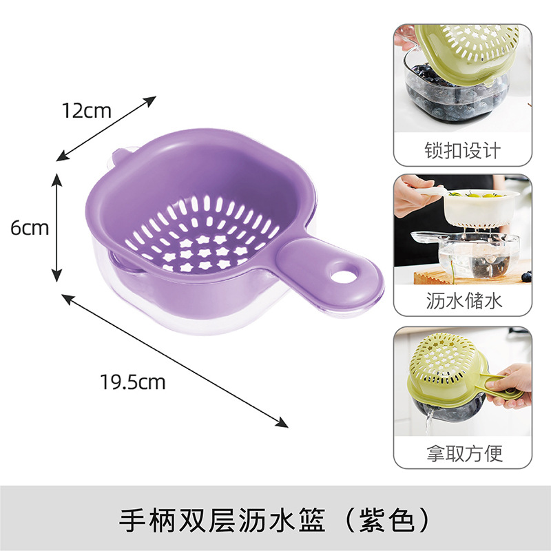 • MINI 이중층 배수 바구니(손잡이 포함) - 보라색✓