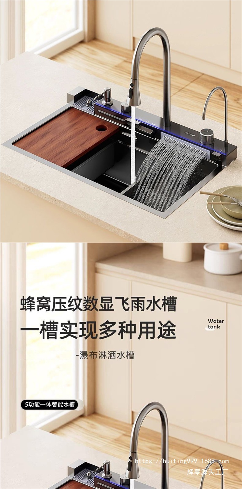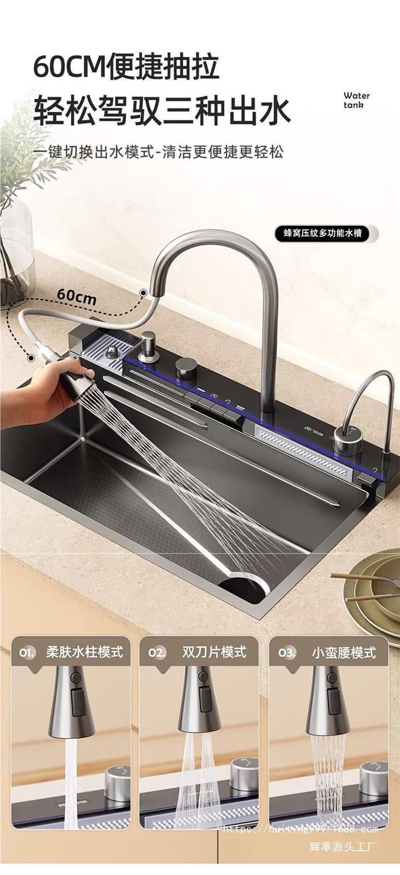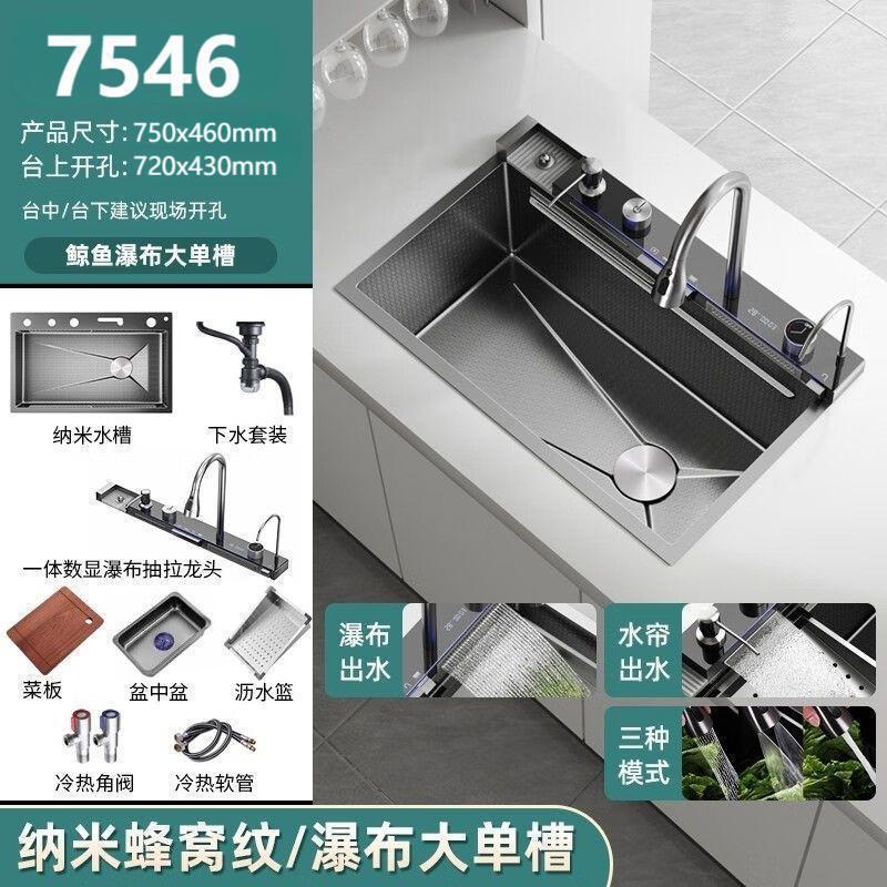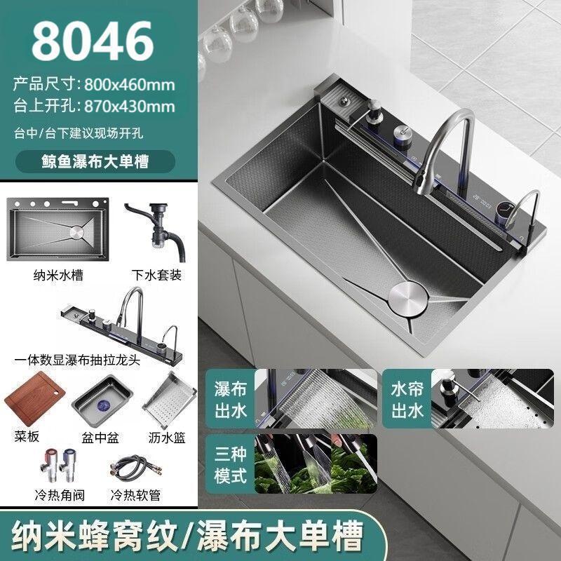고래 비 온 폭포 주방 싱크 스테인레스 스틸 식기 세척 싱크 긁힘 방지 두꺼운 식기 세척 싱크 가정용 벌집 대형 싱글 싱크스토어 가기