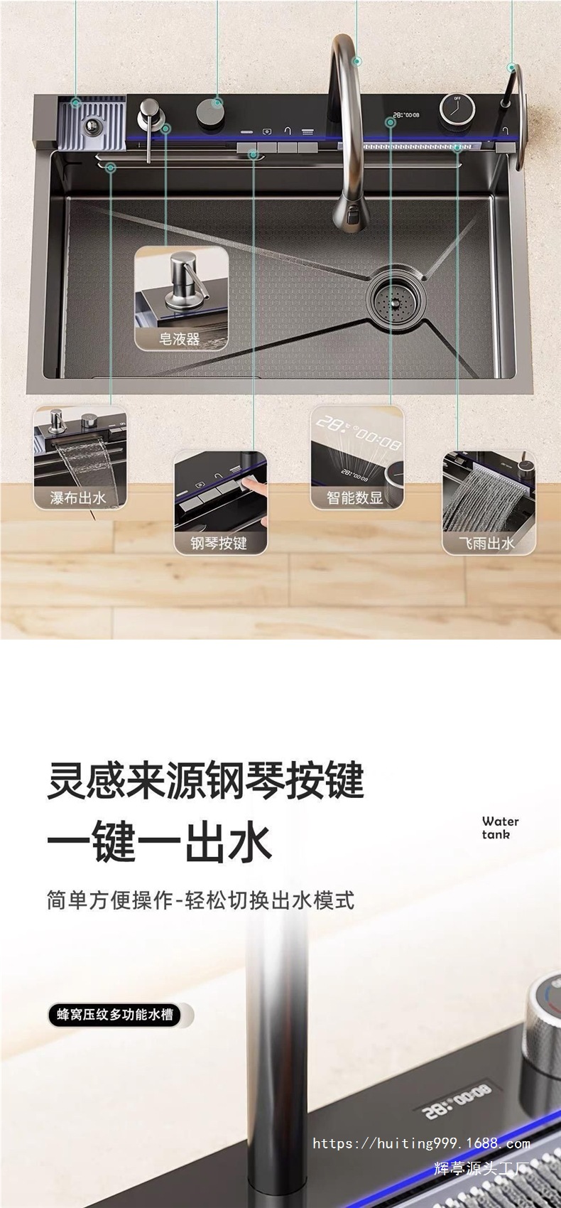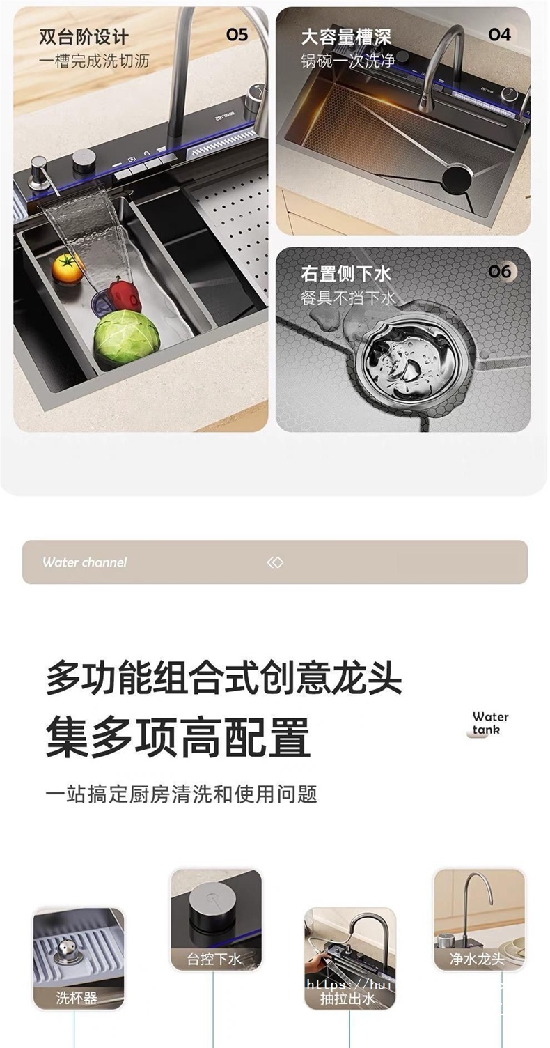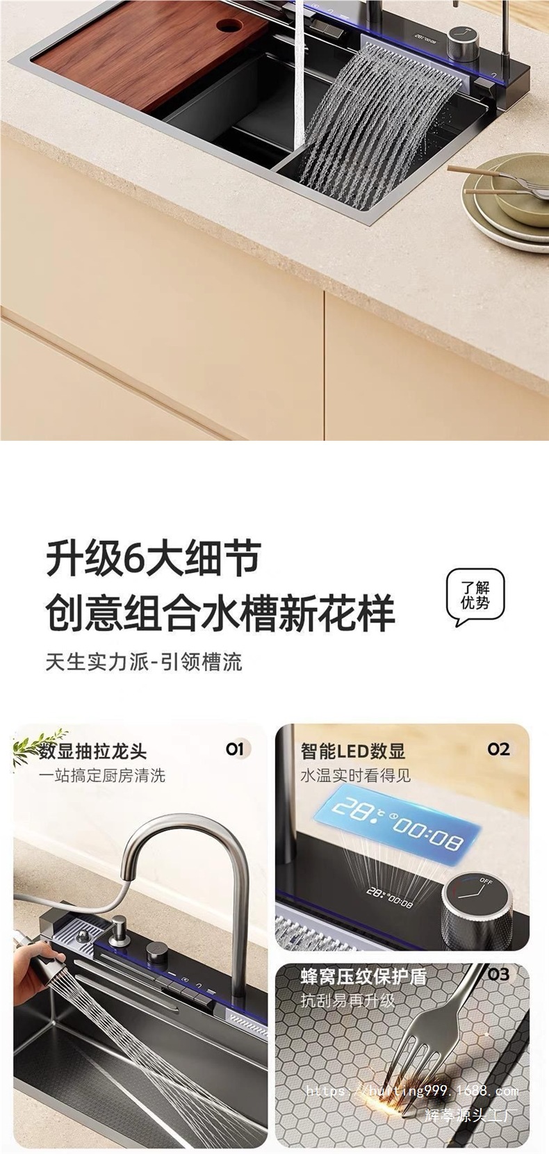 고래 비 온 폭포 주방 싱크 스테인레스 스틸 식기 세척 싱크 긁힘 방지 두꺼운 식기 세척 싱크 가정용 벌집 대형 싱글 싱크스토어 가기