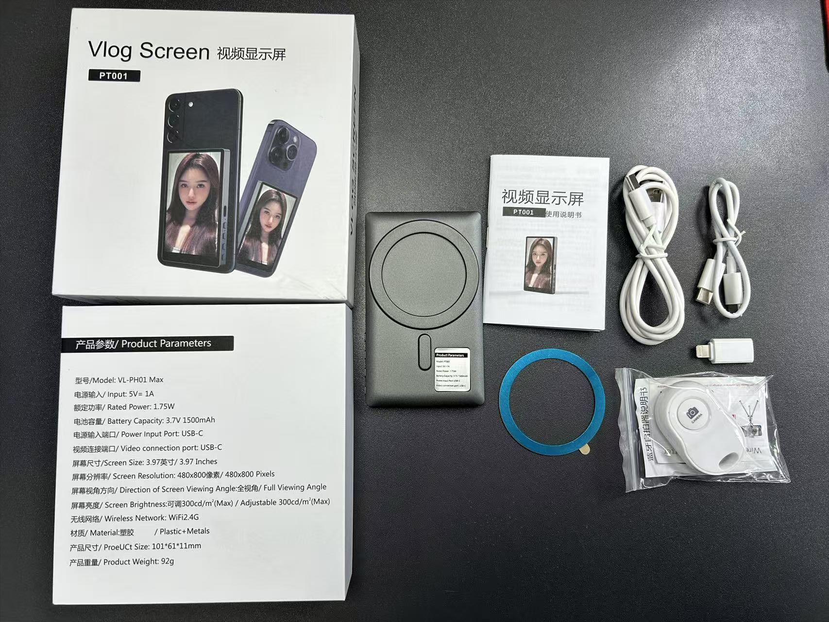 功能:自拍、同屏、充电(可有线连接,也可无线连接,带充电功能)