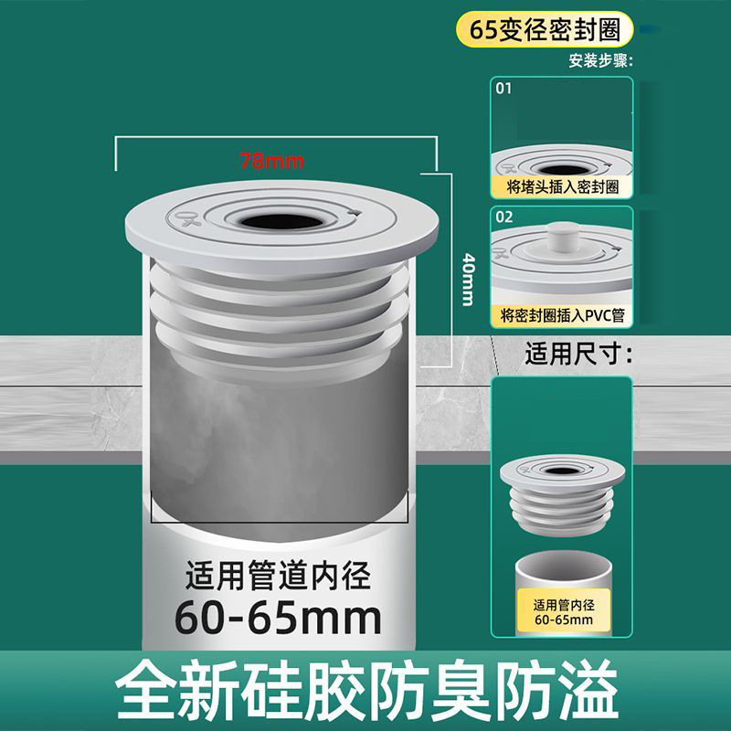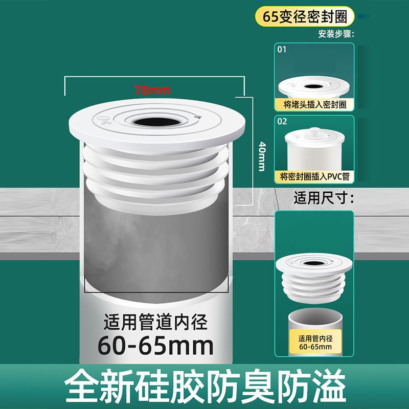 • 회색 냄새 방지 밀봉 플러그 + * 탄성 실리콘 - [60-65mm에 적용 가능] + 두꺼워지고 강화됨
